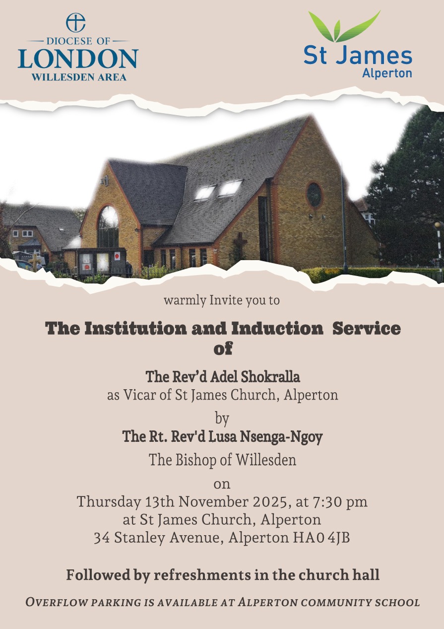 The long search is over and St James has a new vicar. He will be officially licensed as the priest of St James Alperton during an institution and induction service on Thursday 13th November at 7.30pm. Everyone is welcome!