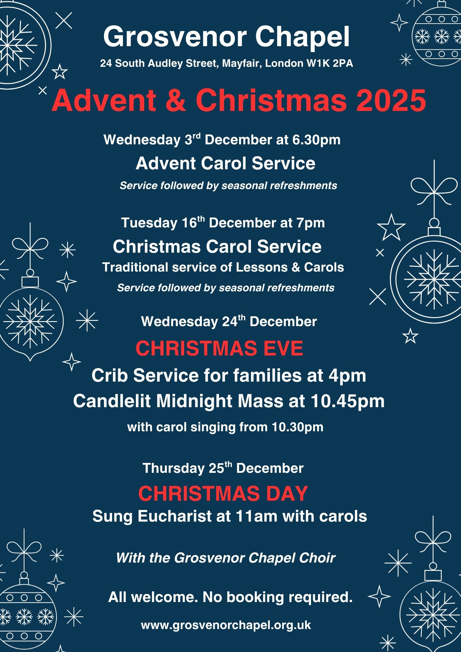 One of the most dramatic services of the year sung by the Grosvenor Chapel Choir. Beginning in darkness and moving to light, we focus on the Advent theme of darkness and light and our relationship with God in Jesus Christ.