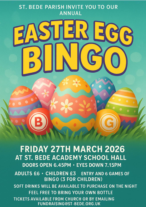 Eyes down… Join us on Friday 27th March at St Bede Academy School for our annual Easter Egg Bingo! Always a popular event, we’d love to see you there.