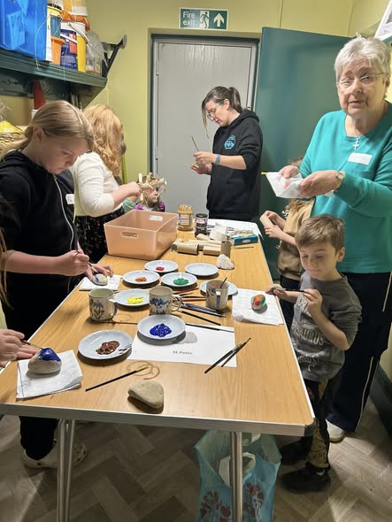 A wonderful morning looking at saints and making St Francis bird feeders, painting rocks for St Peter, making a paper dragon for St George, an eagle for St John, a bookmark for St Cuthbert and a jam jar lantern.It was lovely to welcome more than 20 children and we hope everyone had as much fun as we did!Look forward to seeing you all again soon
