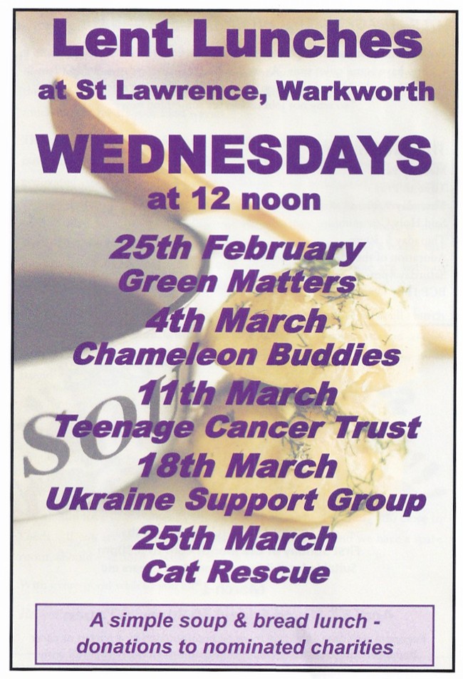 Lent Lunches at St Lawrence, Warkworth - Wednesays begining 25th February.