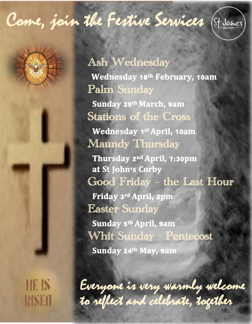Follow us on Facebook for invites and updates - just search for St James Gretton