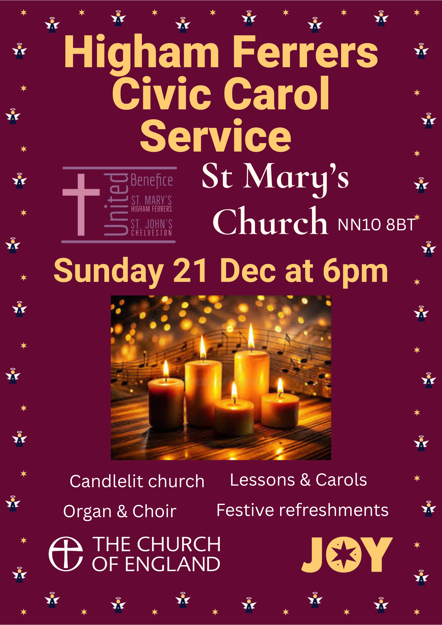 Civic service of traditional nine lessons & carols in a candle lit church.