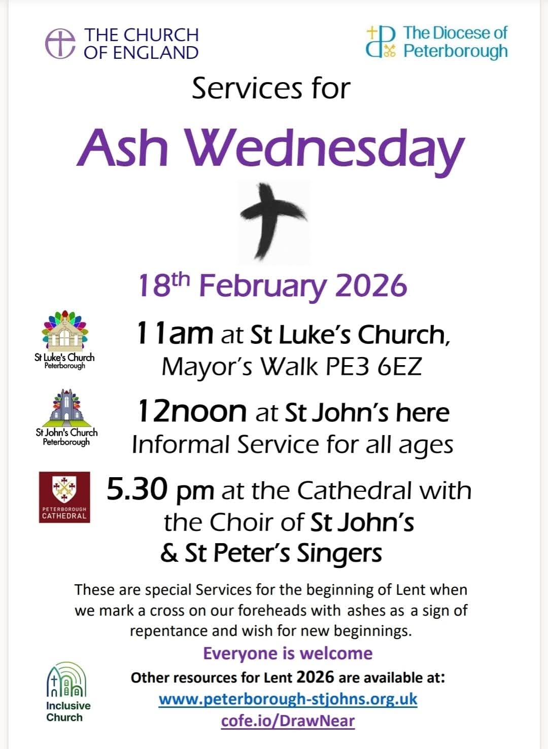 Ash Wednesday is the start of Lent and you are invited to come along and spend some time in worship and prayer to start off this time as we prepare for Easter. Our service at St Luke's is open to all and is at 11am.