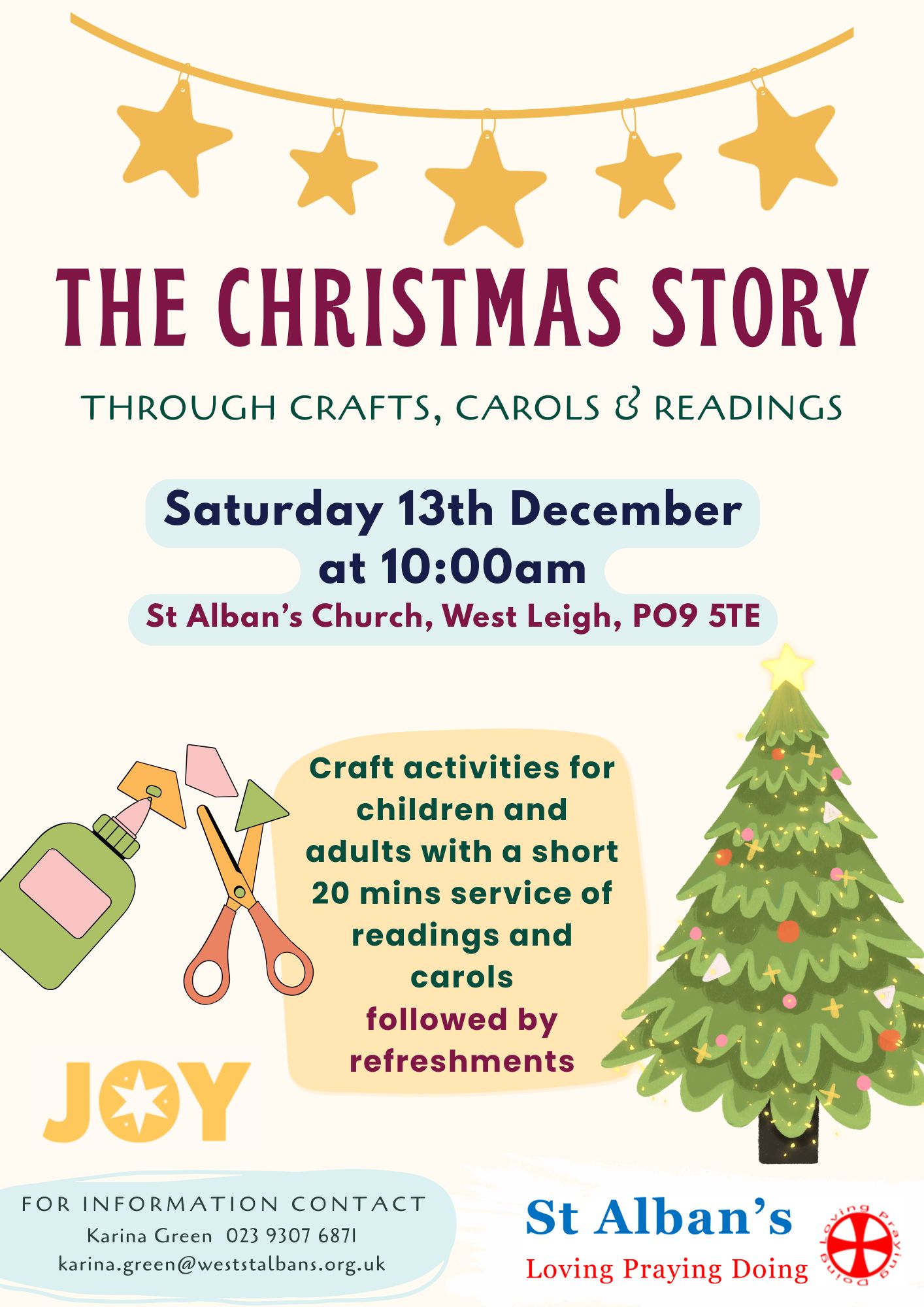A chance to hear the Christmas Story, to enage with craft activities and to sing Christmas Carols