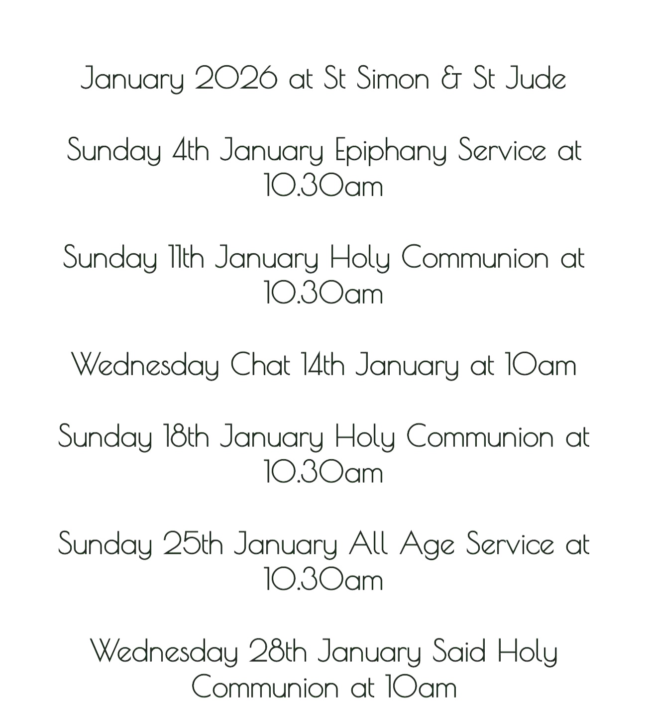 January 2026 at St Simon and St Jude