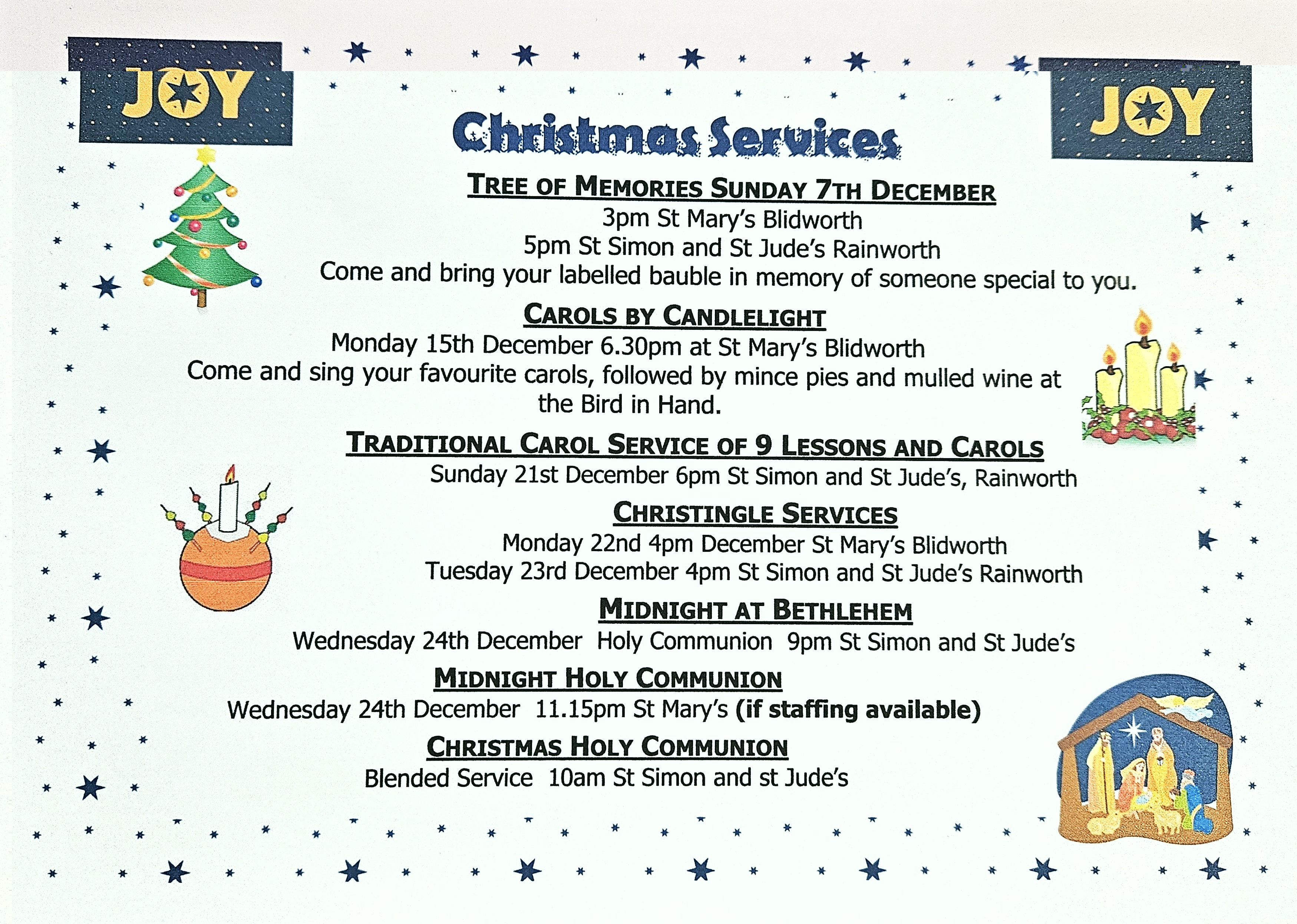 Christmas services at a glance.  All welcome, we'd love to see you!