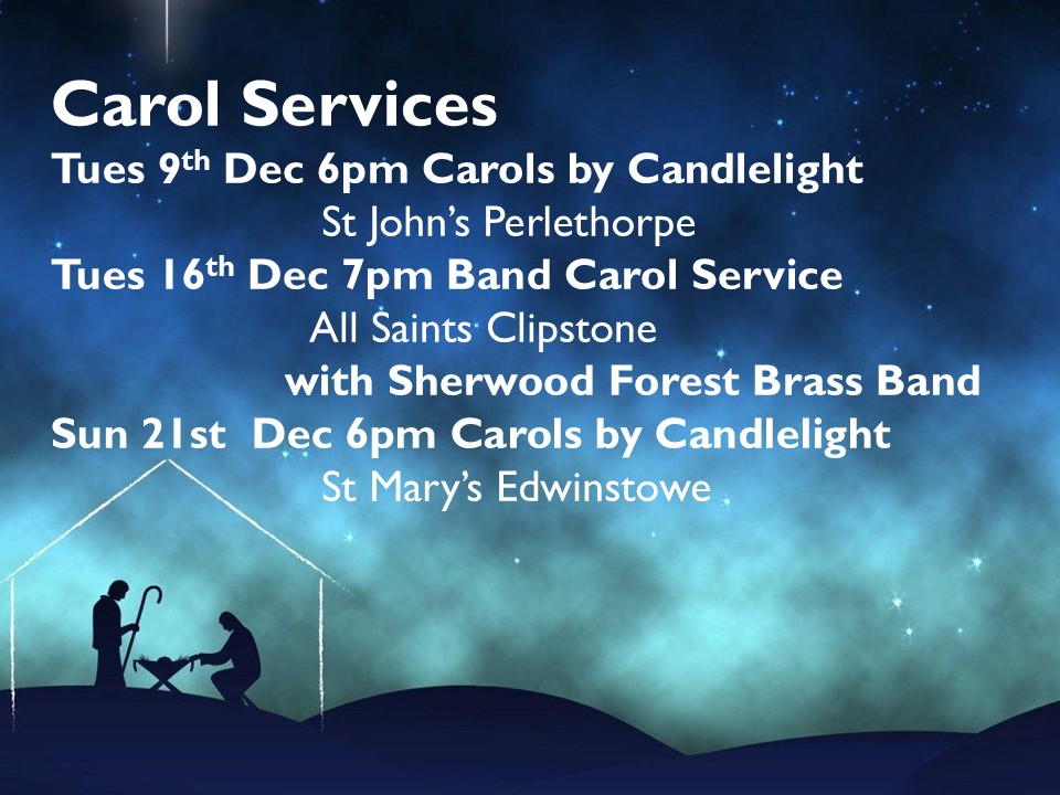 Tues 16th December 7pm. Sherwood Forest Brass Band will accompany the carols and will play some extra Christmas pieces too. Come along and enjoy!