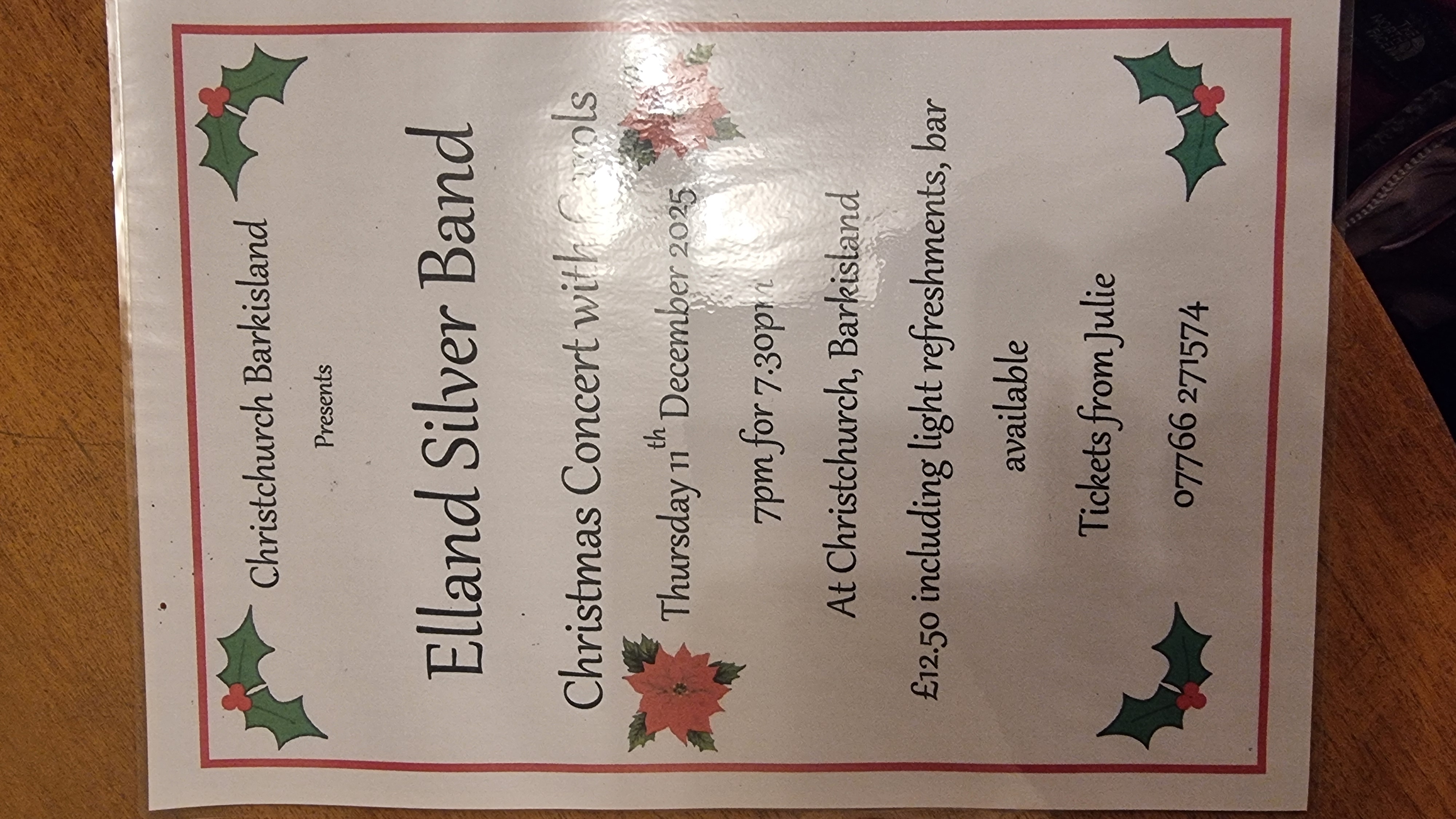 At 7pm on Thursday 11th December Elland Silver Band will be playing our Christmas Concert with Carols in the Church. Refreshments including a bar will be available. Tickets at £12.50 are available from Julie on  07766 271574