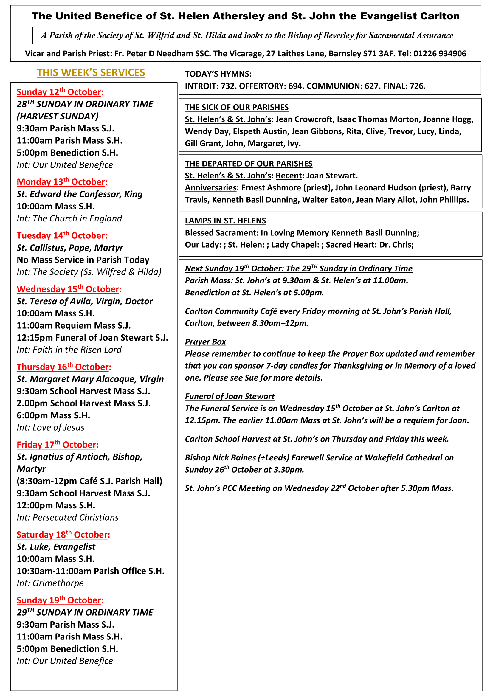 Weekly Church Pew Sheet - Sunday 12th October 2025.