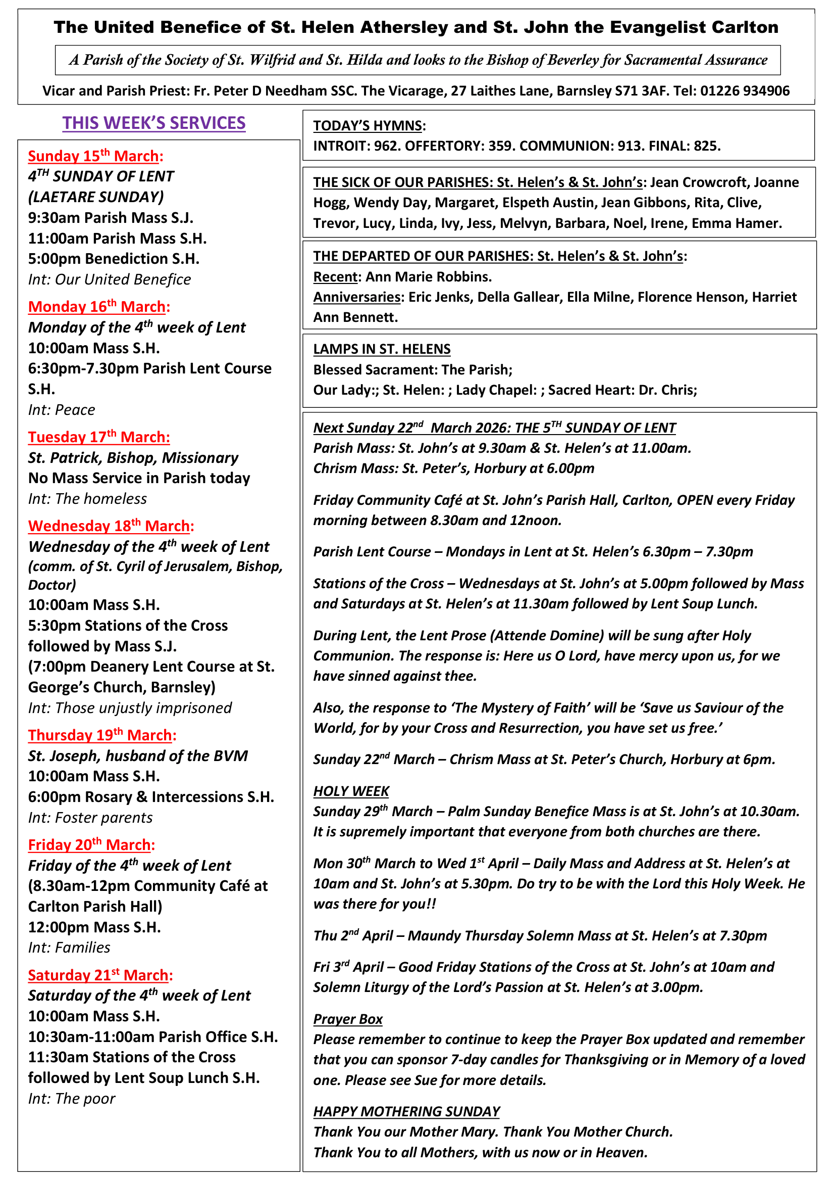 Weekly Church Pew Sheet - 15th March 2026