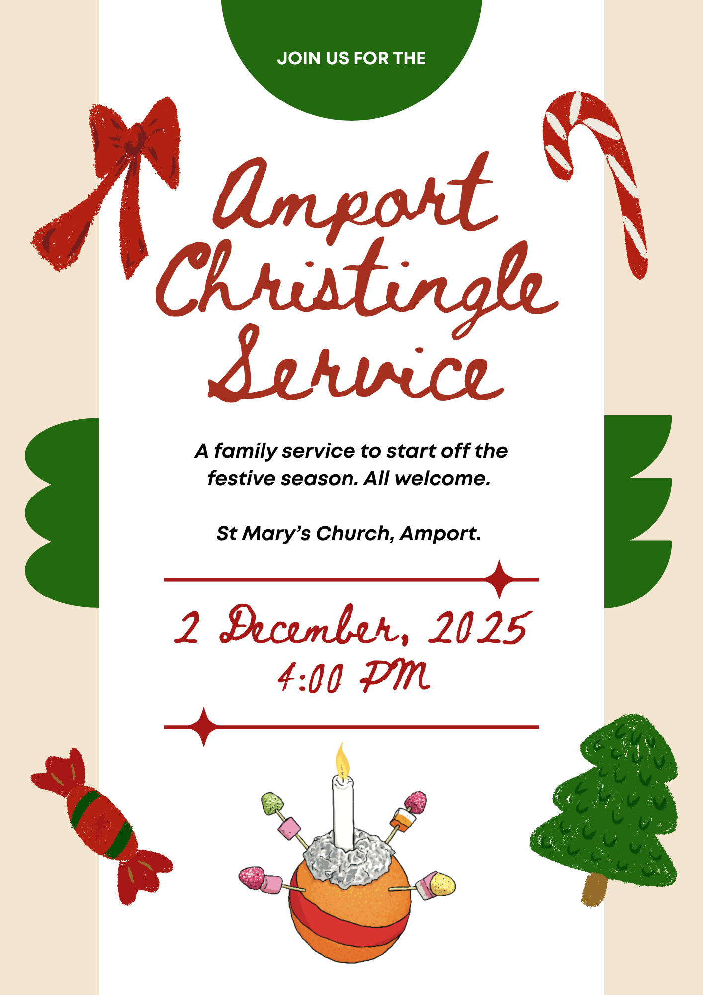Come and enjoy St Mary's, Amport. We have heating, real coffee and lovely fellowship. We enjoy both traditional services-Holy Communion with robed choir (2nd Sundays at 11.00am) and Choral Evensong (4th Sundays at 6pm) and the more informal Fresh Expression of Church-our 'Coffee and Footsteps' weekly at 10am apart from the 2nd Sunday in the month.