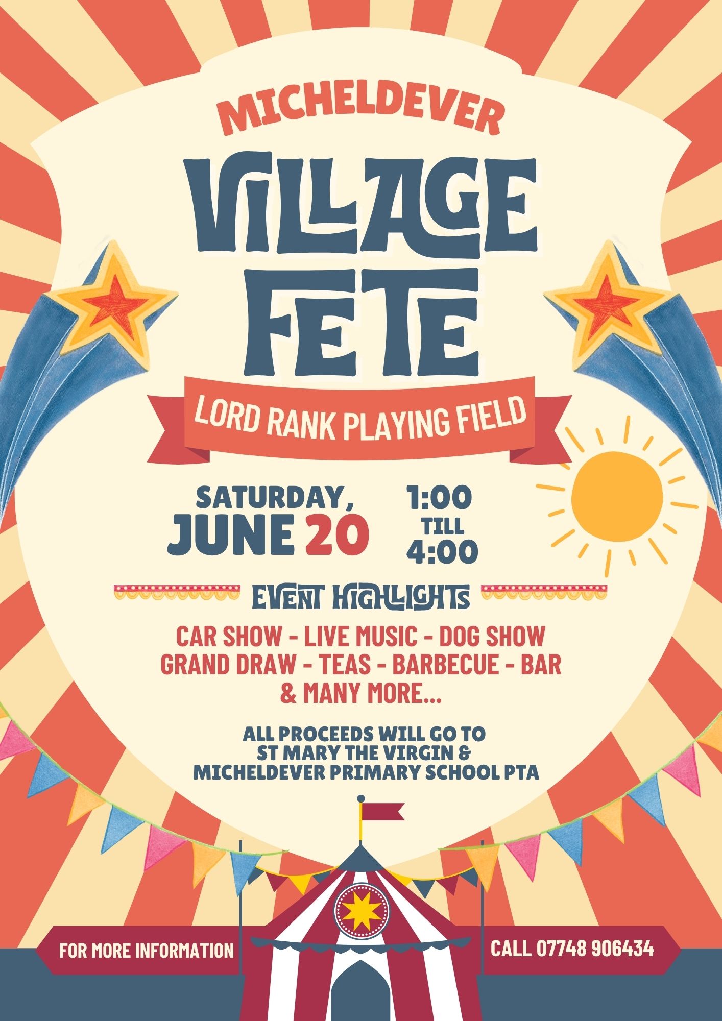 Just a quick heads up! St Mary's, Micheldever village fete is in preparation. Looking forward to a fun-packed afternoon with dog show, live music and new for 2026 a vintage car show. Please put the date in the diary.