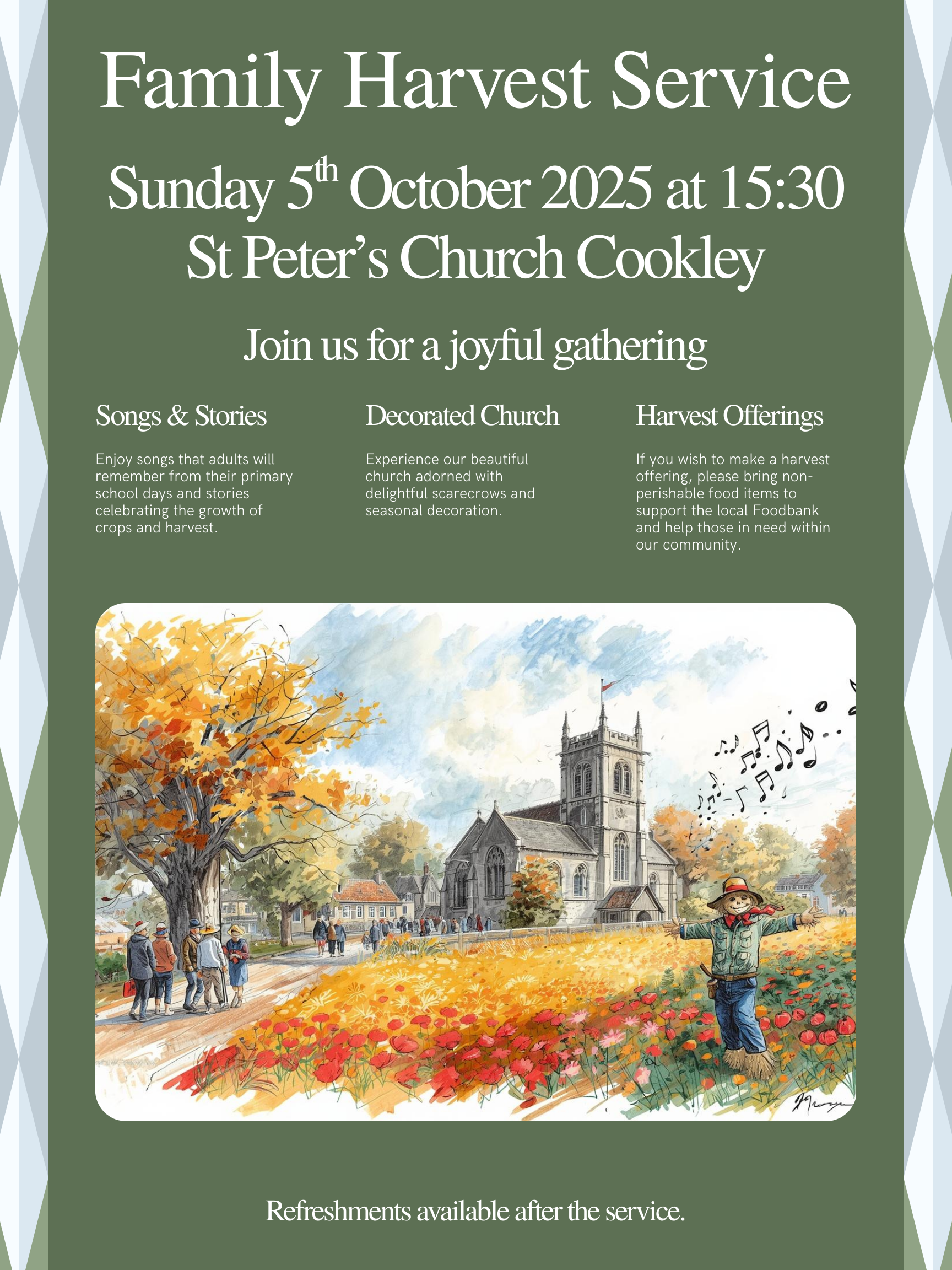 Do join us for this joyful gathering of praise where we give thanks for the harvest.