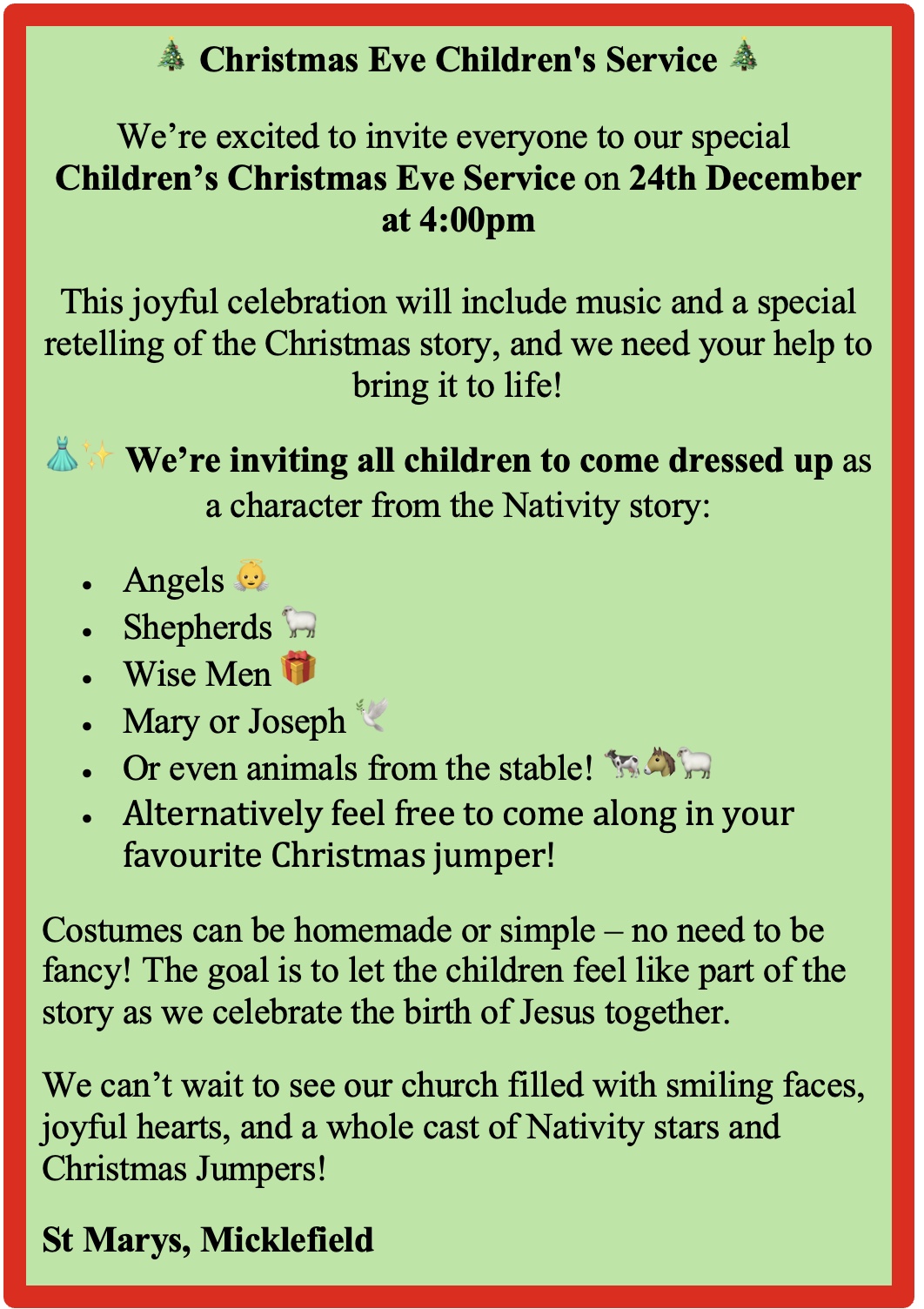 All Age Worship - Family service CHANGE OF DATE NEXT SERVICE 14th DECEMBER