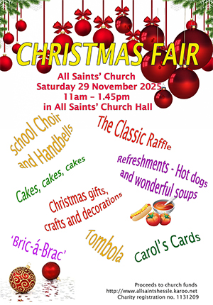Cake stall, Book stall, Fair trade, Refreshments Santa's.
