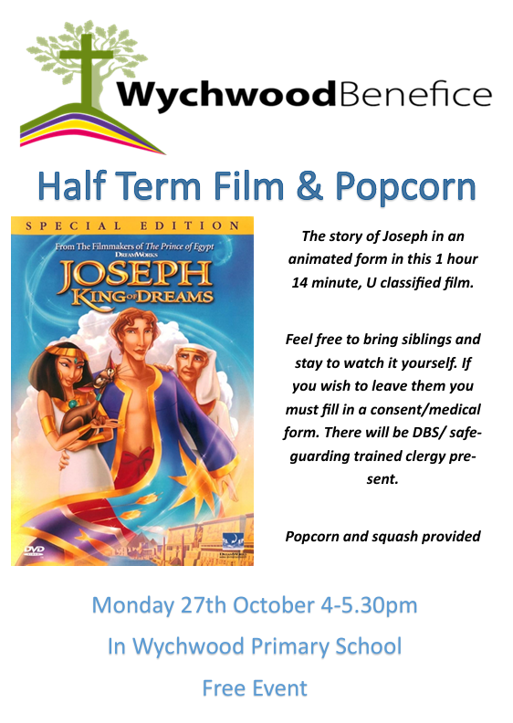 Half Term Film & Popcorn. The story of Joseph in an animated form in this 1 hour 14 minute, U classified film.