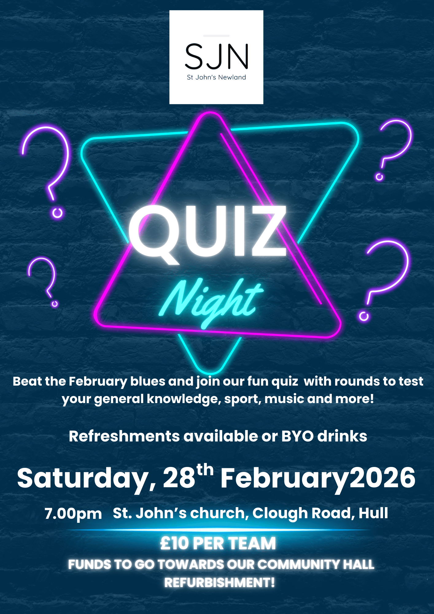 Saturday 28th February from 7.00pm.  £10 per team.  Refreshments available/bring your own drinks.
