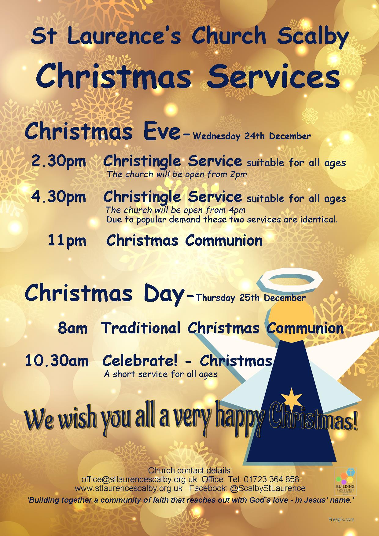 Come and sing as we celebrate Christmas with carols, readings and the Christmas Festival Singers. St Laurence's Hand Bell Ringers will be playing from 3.30pm. This service will be repeated at 6.30pm.