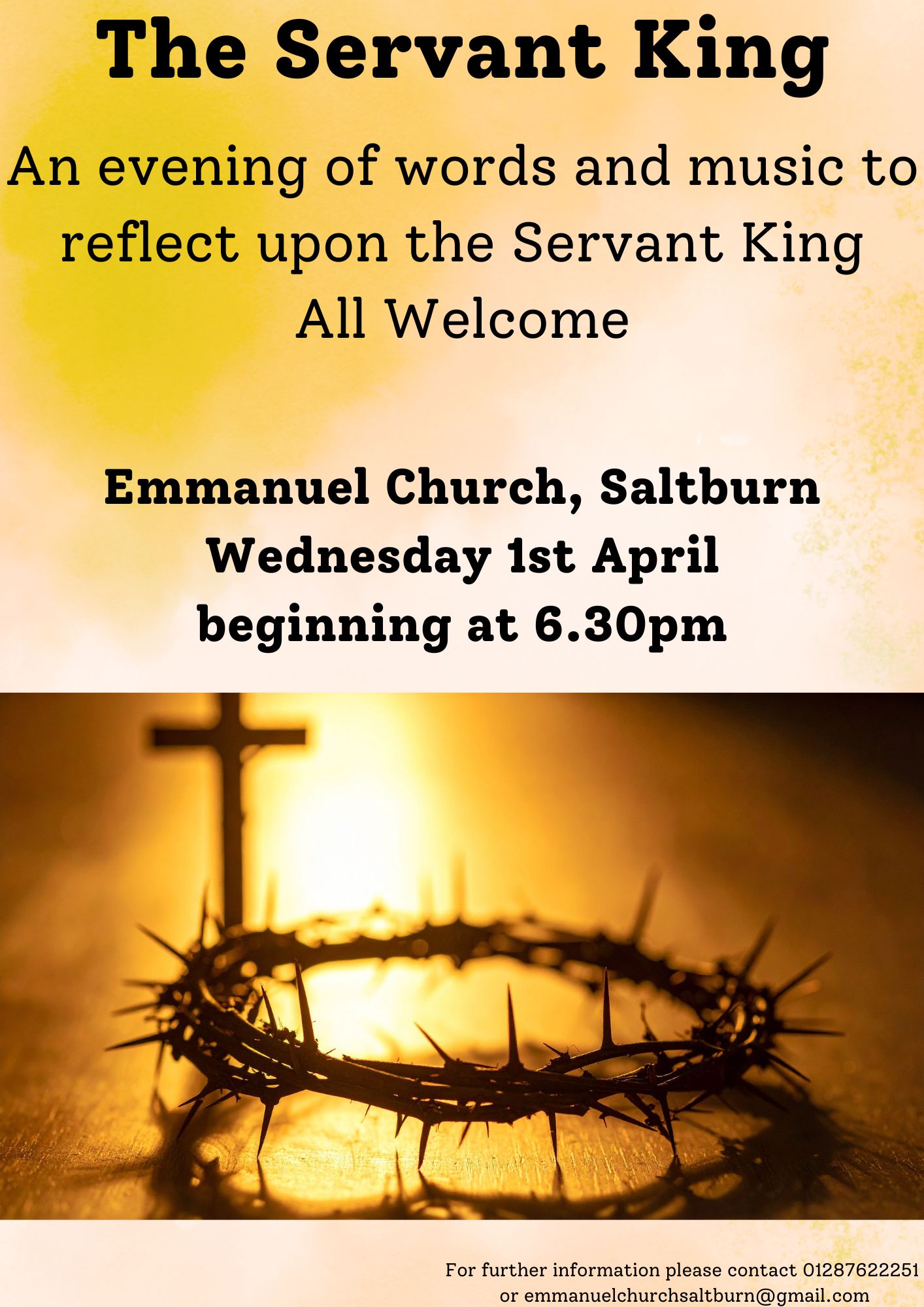 Holy Wednesday 6.30pm The Servant King, an evening of words and music to reflect upon the Servant King