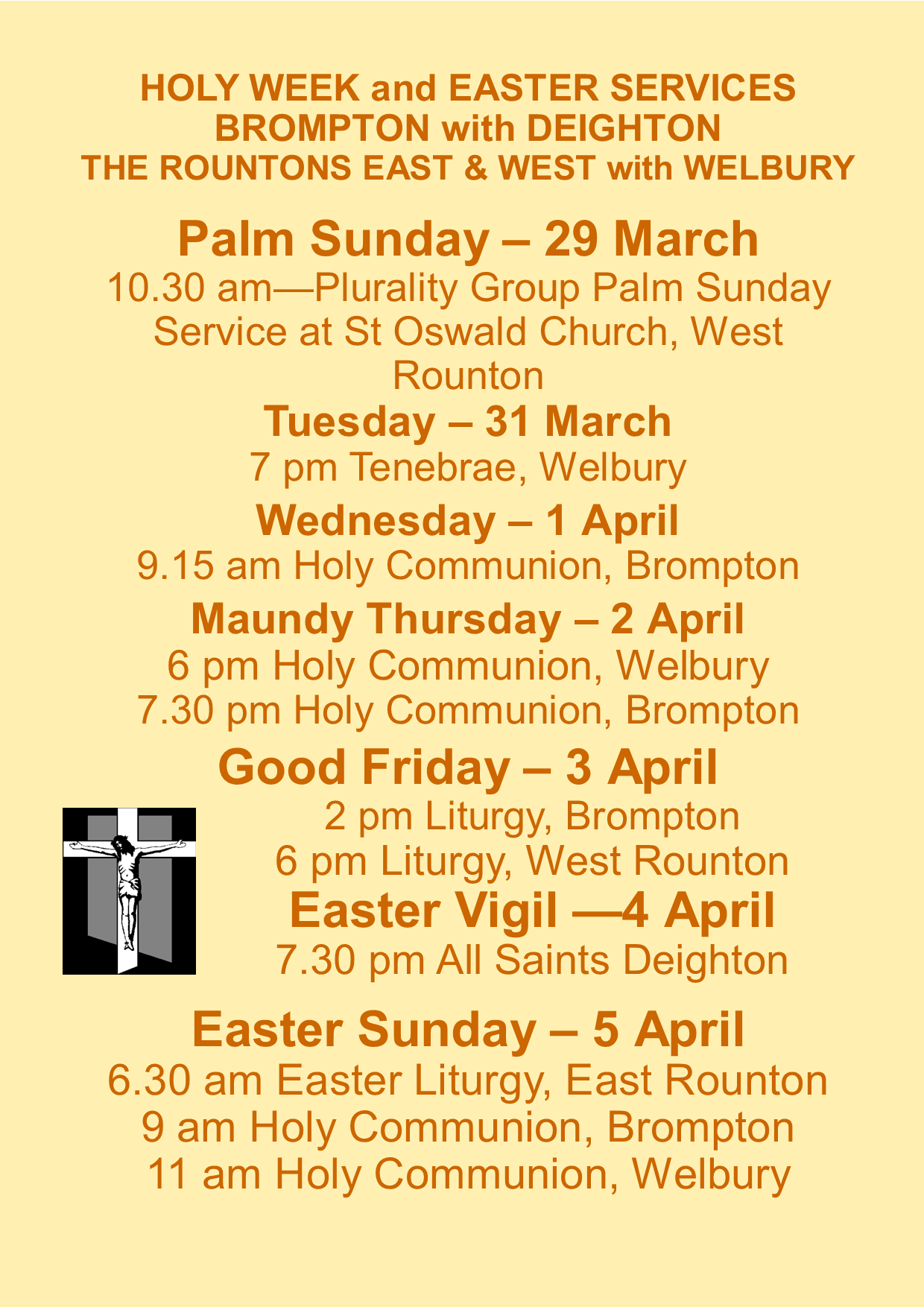 A short informal service with discussion, music, reflection and prayer preceded by refreshments.