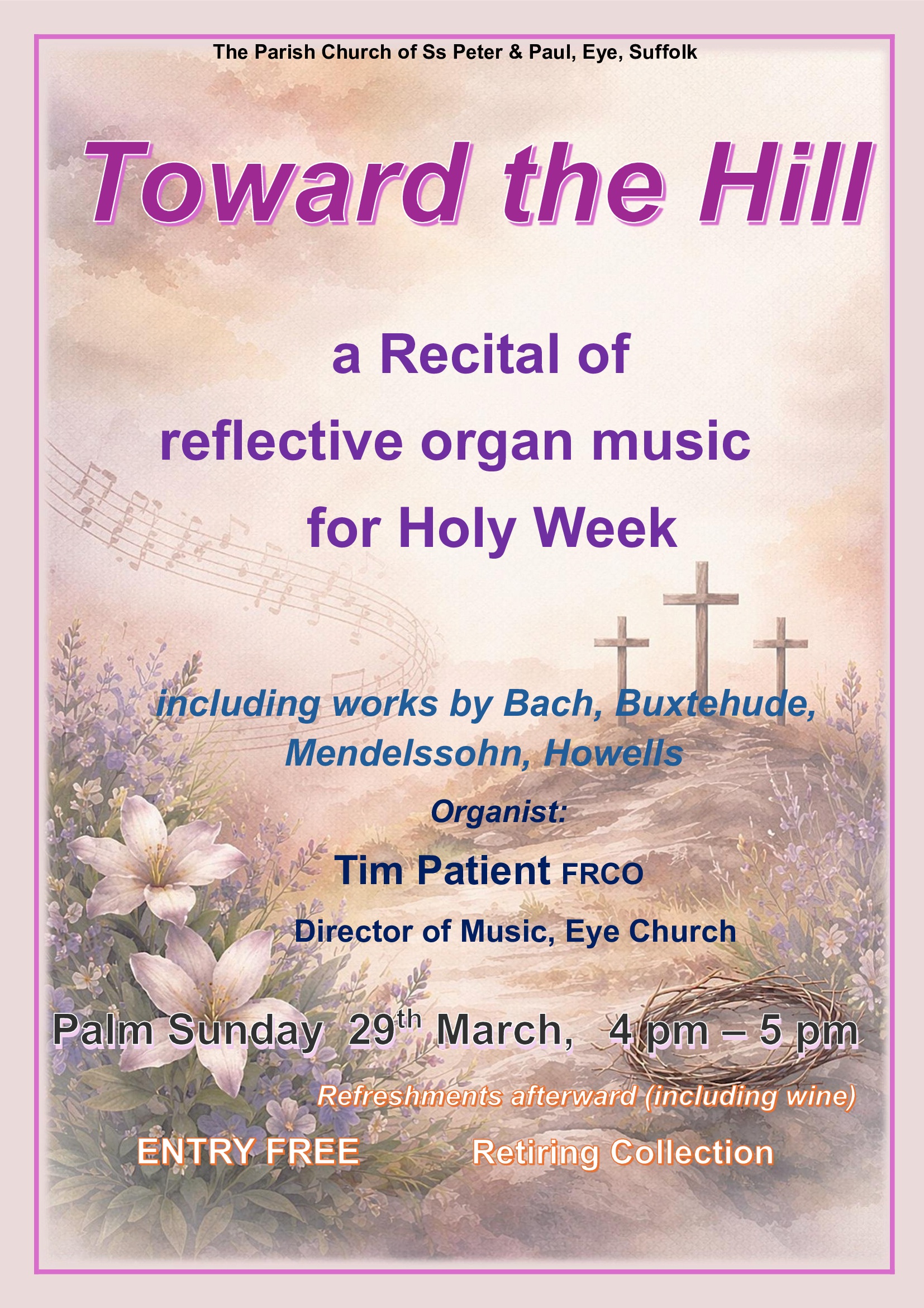 All are welcome of any of these, either for all or any part of each one. Please feel free to come and go as you wish. This series of events is held at Eye Parish Church but we welcome visitors from the benefice churches, and any others who wish to join us