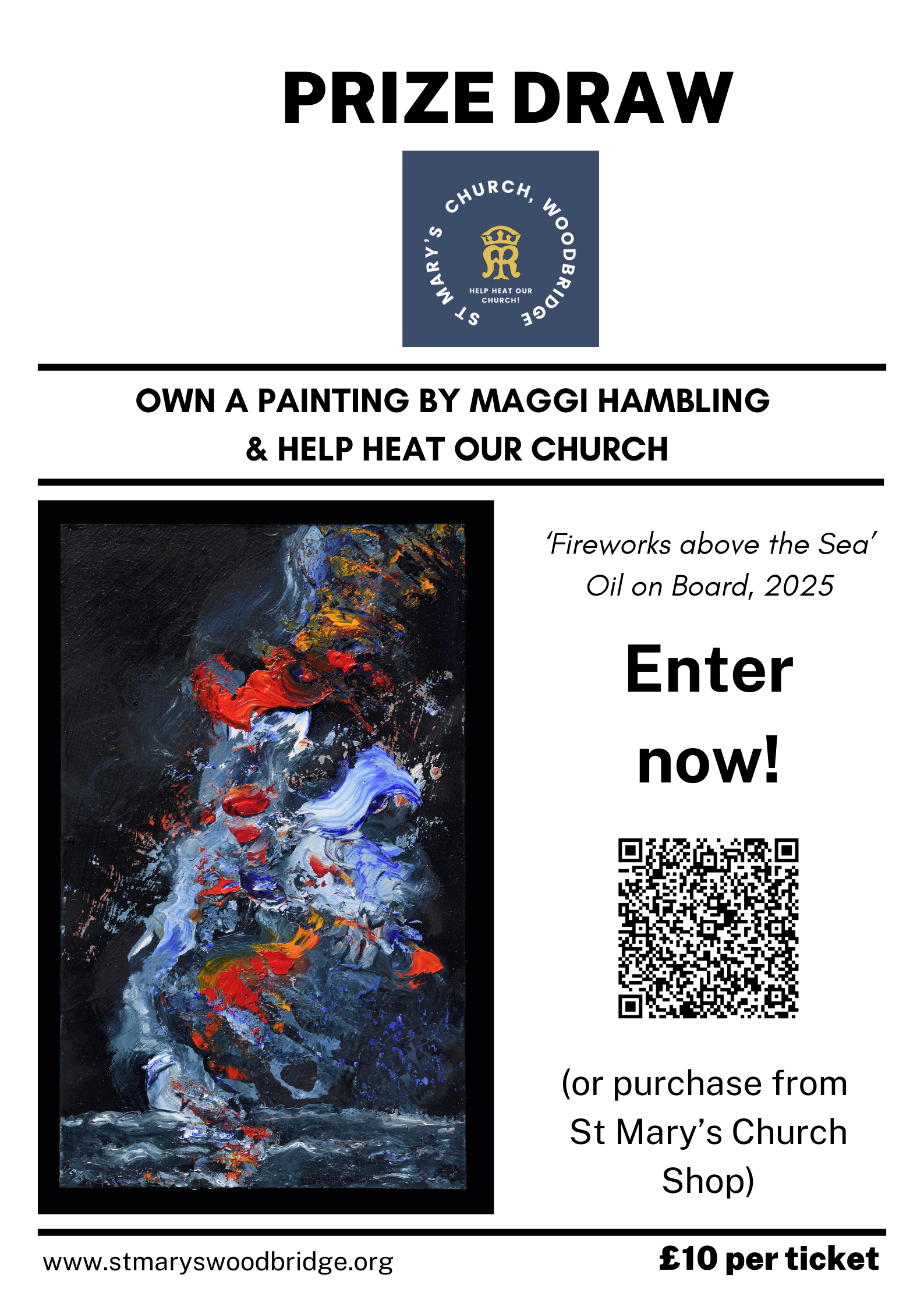 Your chance to win a painting by Maggi Hambling, kindly donated towards our fundraising appeal to 'help heat our church.' Details on the Crowdfunder page: https://www.crowdfunder.co.uk/p/maggi-hambling-painting-prize-draw-st-marys