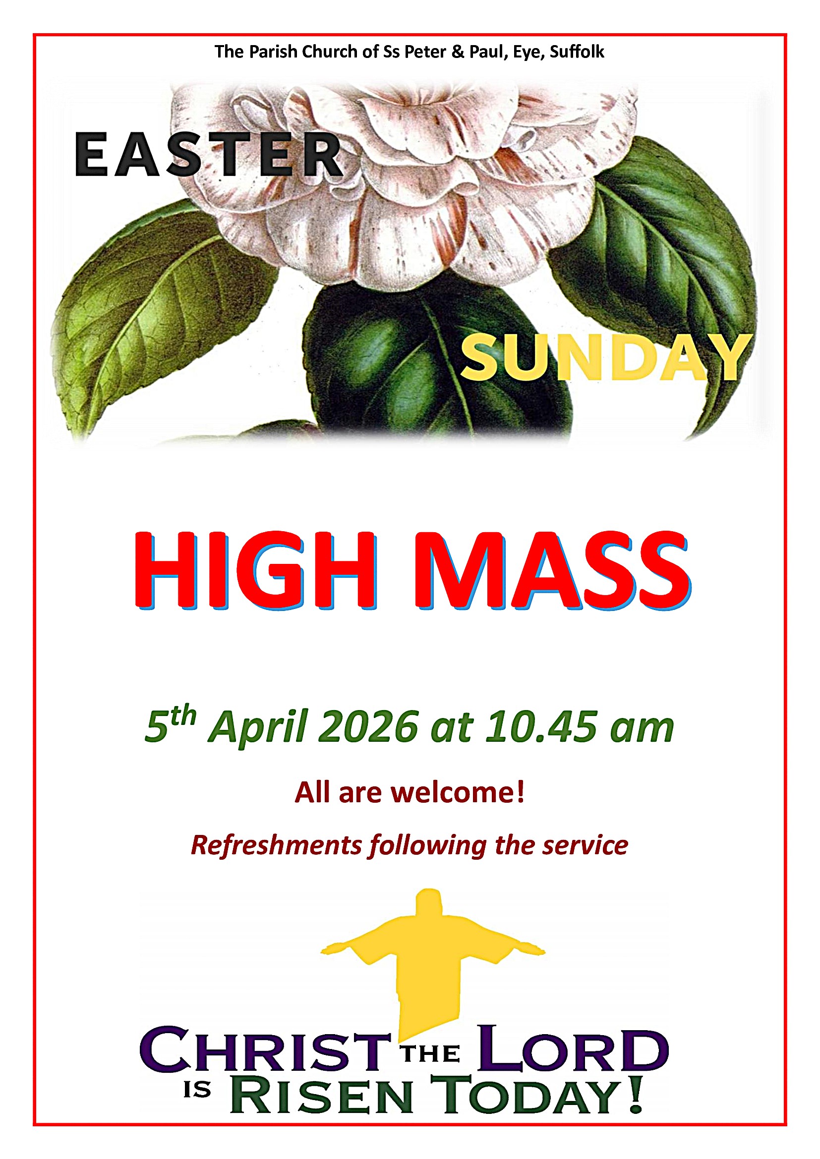 The following services in Holy Week will be held at the Parish Church of Ss Peter & Paul, Eye