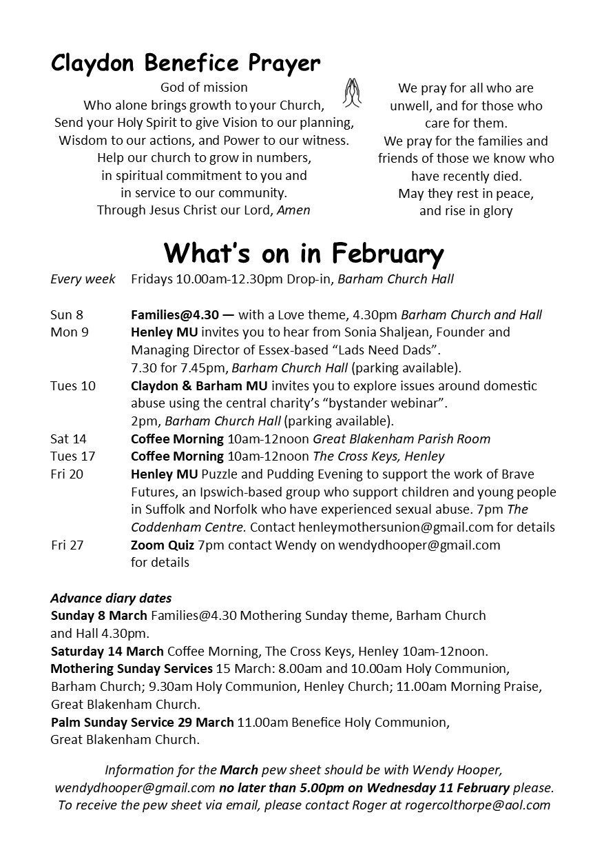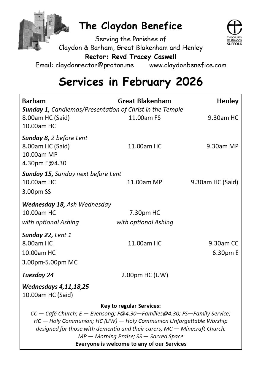 You will only be able to access Barham Church this weekend by travelling via Henley or Hemingstone, this is likely to be the case for the rest of the coming week. It was good that, despite the access difficulties, there was a packed Church on Friday to say our farewells to Edmund Jackson. However I am sure he would have smiled at the hearse getting lost in the diversions on the way to the Church!We pray for Bishop Joanne as she formally starts work as our Diocesan Bishop following her enthronement at the Cathedral on Saturday.