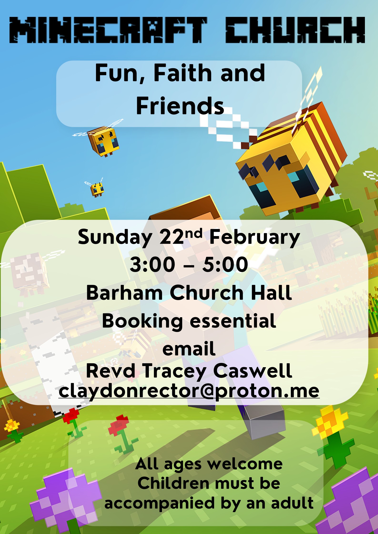 Also note that Minecraft Church is being run again on the afternoon of Sunday 22nd February. Please bring the attached poster to the attention of any families you think might be interested.