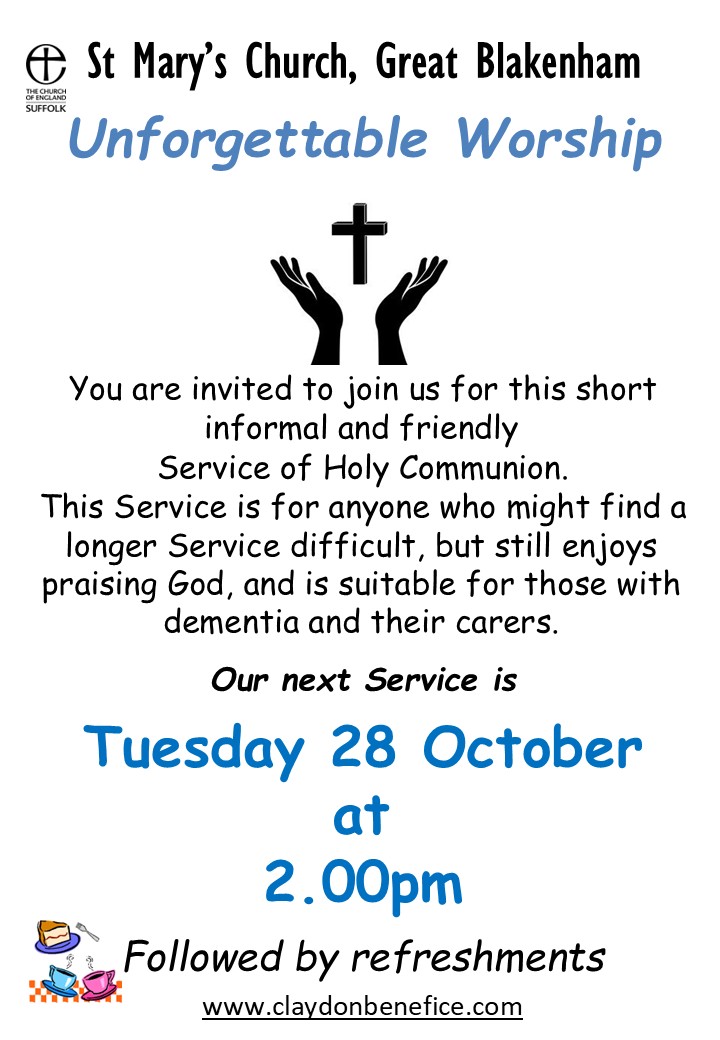 On 5th Sundays and certain Sundays in December this may be a benefice Service at either Henley or Gt Blakenham - Please Check THE MONTHLY NOTICE SHEET