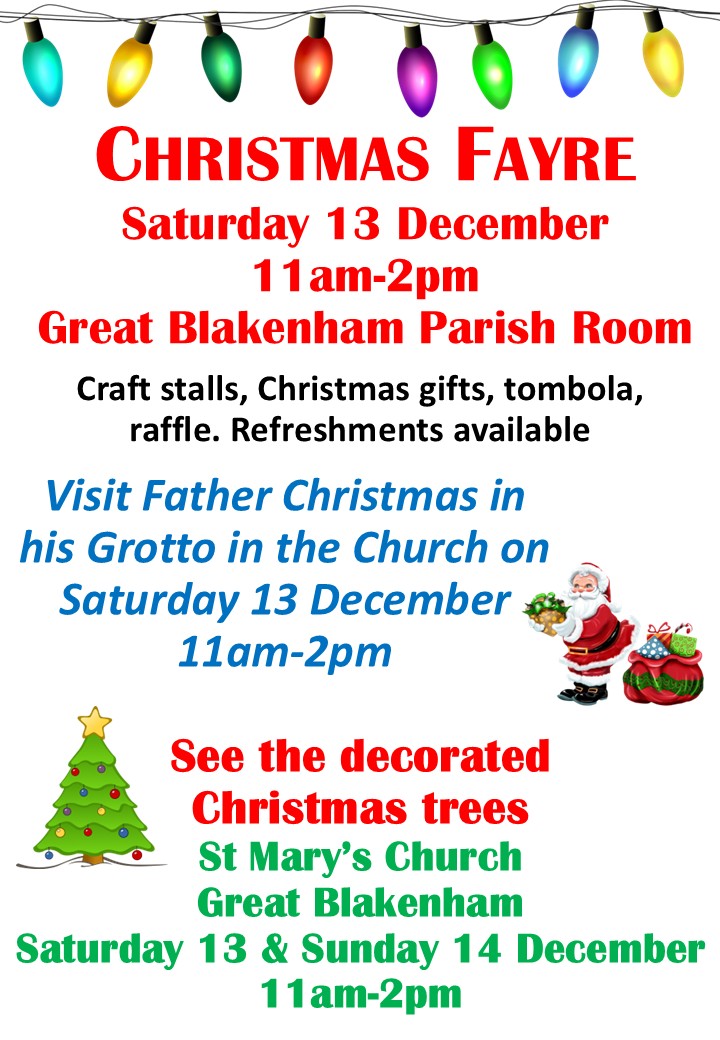 Christmas Fayre in the Parish Room and Trees in the church, visit Father Christmas in his Grotto!