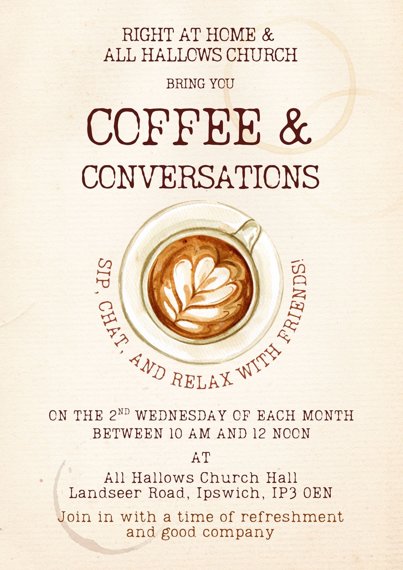 And join us for a time of fellowship over tea and coffee after the service.