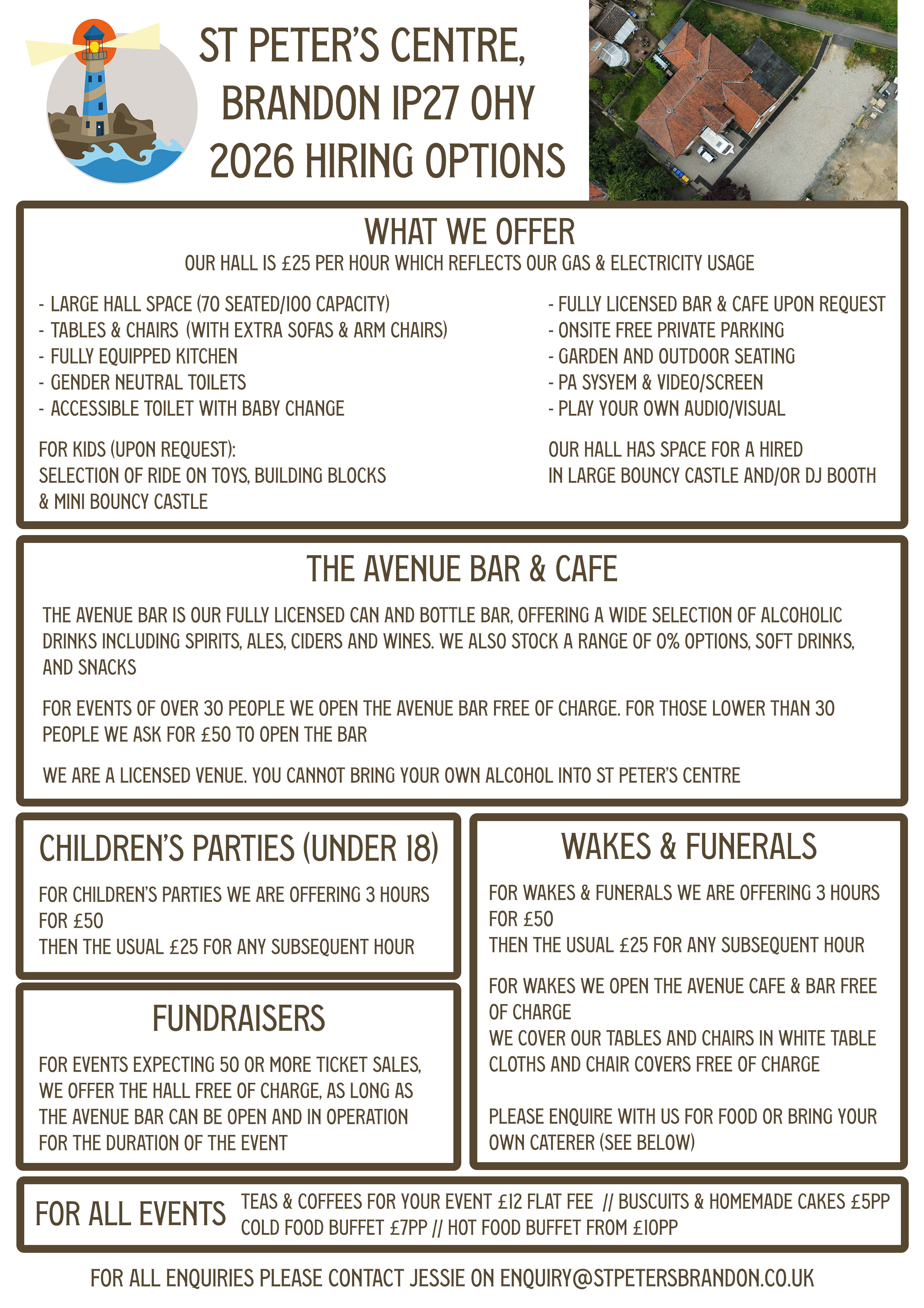 St Peter’s Centre (formerly and fondly known as The Church Institute) is just a five-minute walk up The Avenue on the way into Brandon Town.