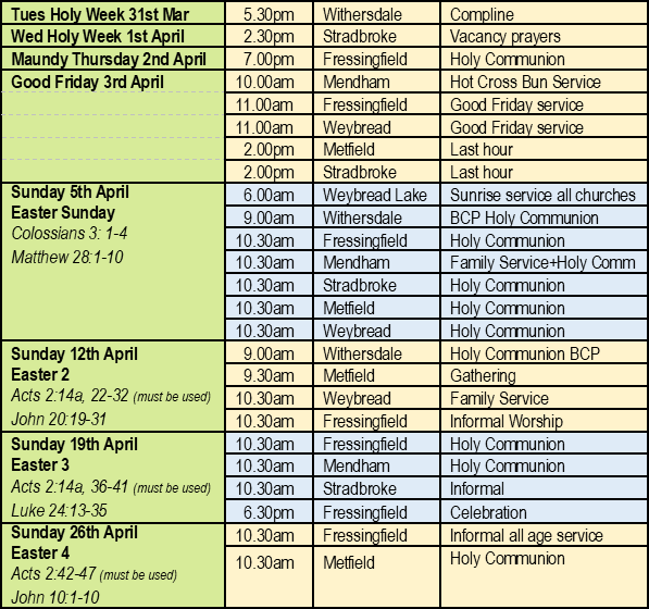 The service rota for services in all our churches
