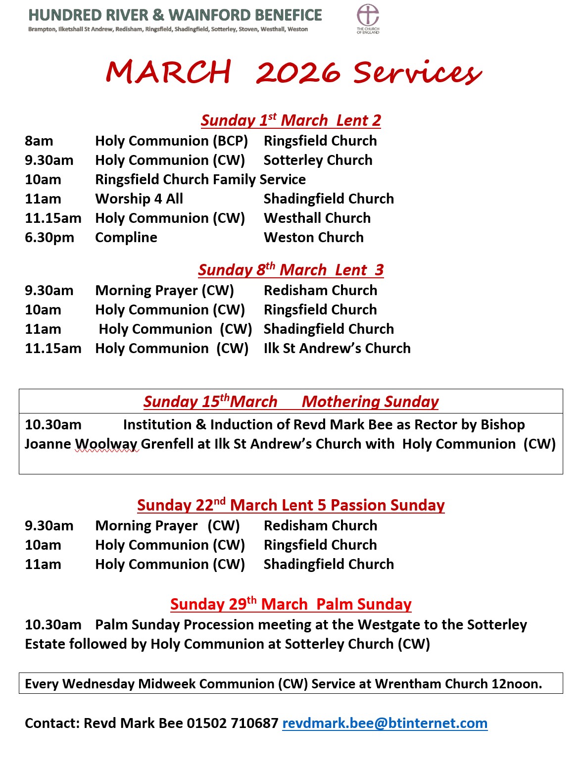 March services in the Hundred River Parishes