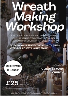 Pulham St Mary Church. Christmas Pudding making with Father Christmas! Raffle, tea, coffee, mince pies, watch father Christmas make this year's Christmas Pudding mixture! Bring your own basin or buy at church.
