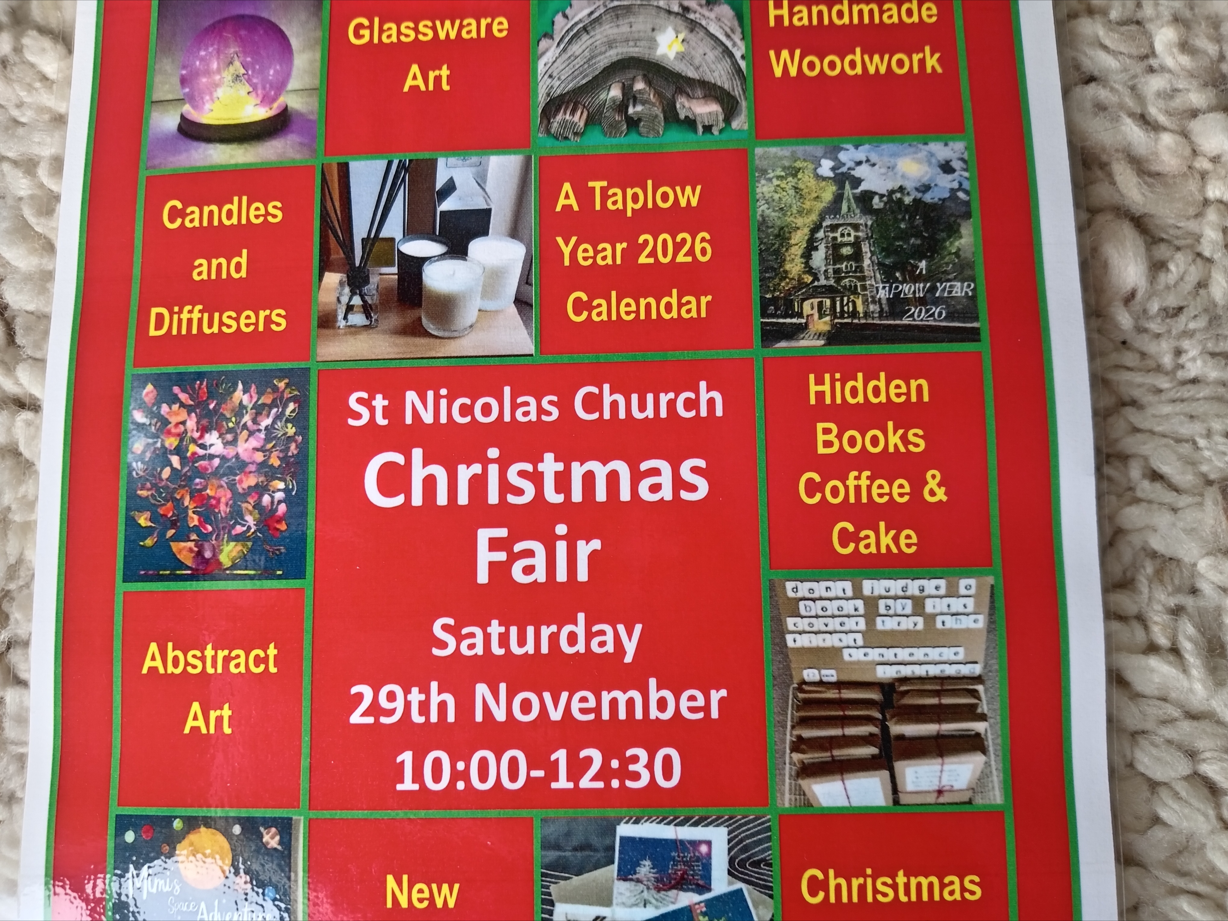 An opportunity to browse and buy for Christmas - handmade woodwork, glassware, art, candles and diffusers, books, cards, Taplow 2026 calendars, map illustrations and more and of course a wonderful warm space and welcome with delicious coffee and cake and a chance to relax with friends or make new ones.