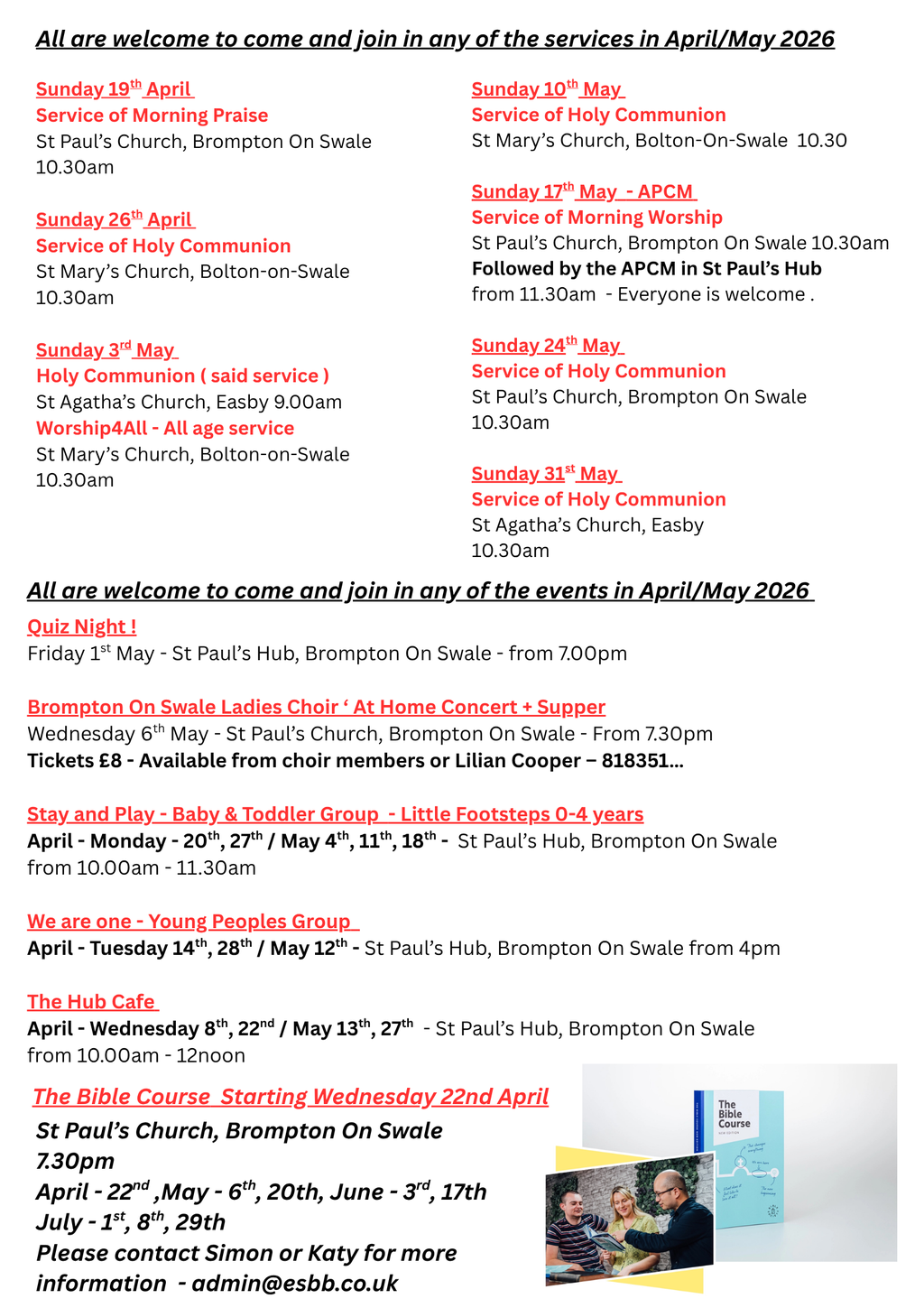 Please email [email protected] for more information regarding being baptised in the Parish.