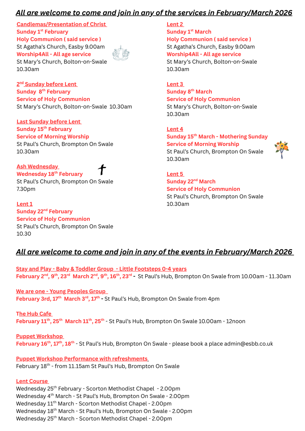 Please let Simon or Katy know if you are attending this years Lent course so we can make sure that we have enough materials/books for everyone, thank you.