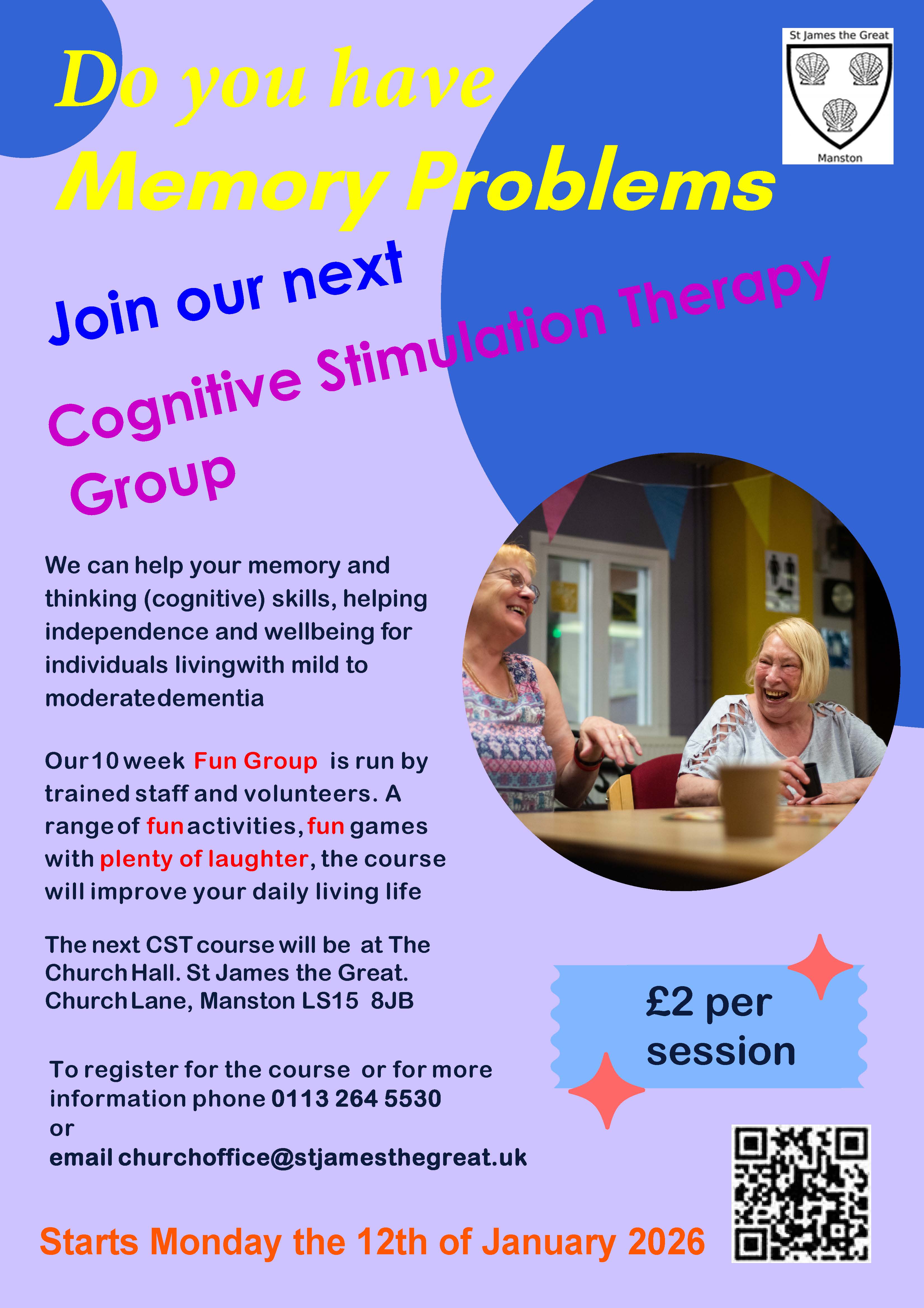 We are starting an 8-week CST Course at St. James the Great Manston, which has been specifically designed to help people who have been diagnosed as having dementia.