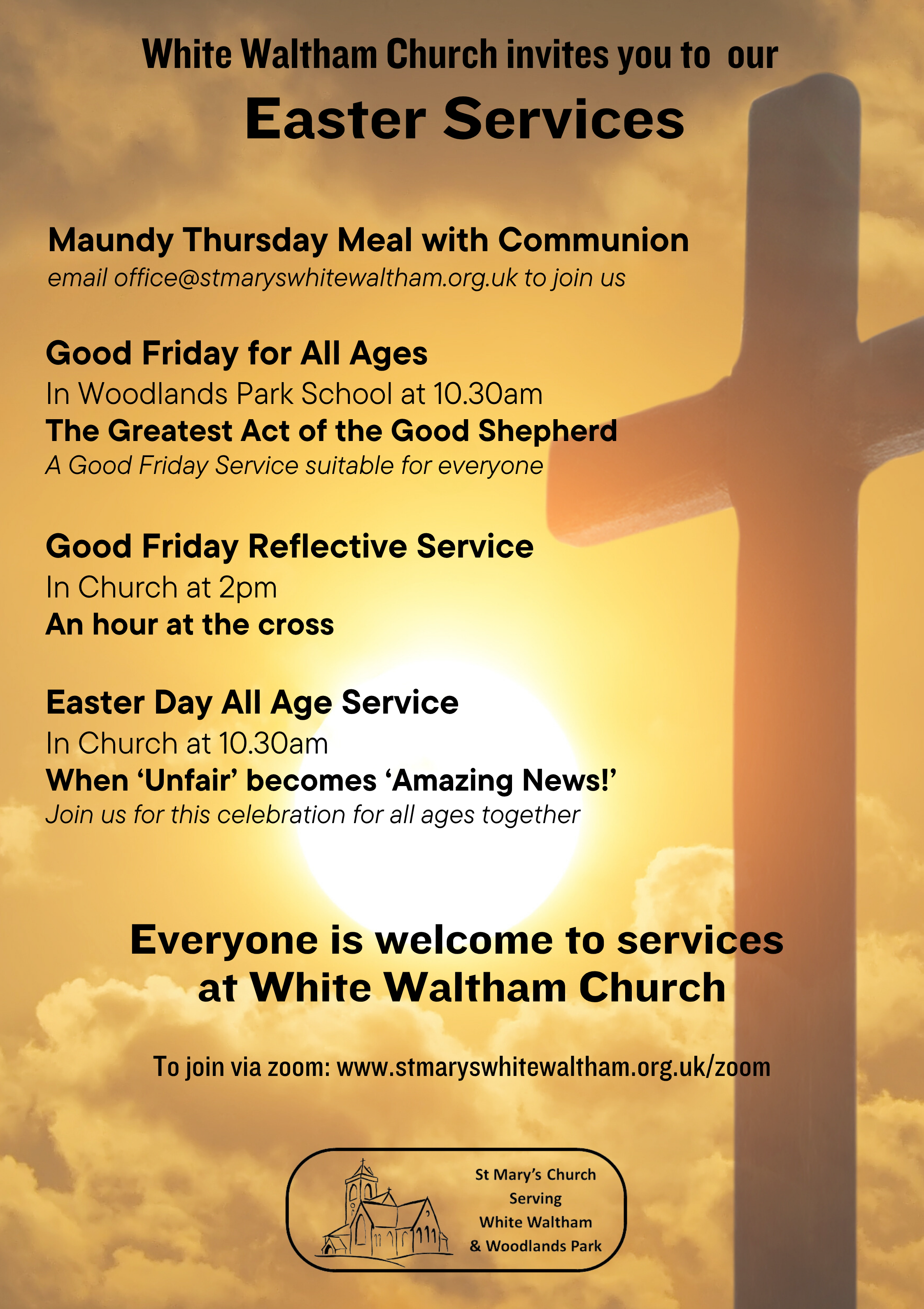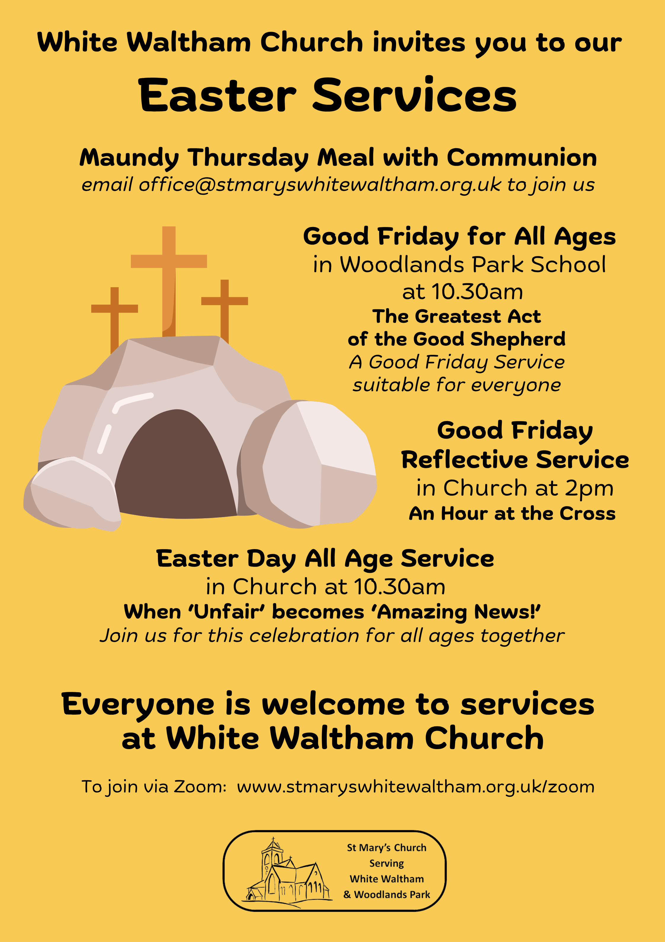 Please doi join us for this quiet reflective service for Good Friday. 2pm at White Waltham Church.