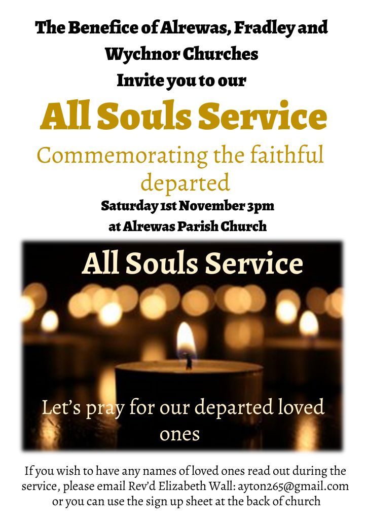 Commemorating the faithful departed. A reflective service as we pray for our departed loved ones. See poster for details of you would like any names read out at this service.