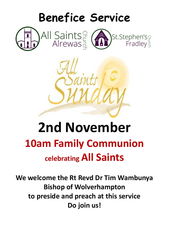 Please note there will be no Rise and Shine on the 2nd November as this will be a celebration of our patronal festival for All Saints