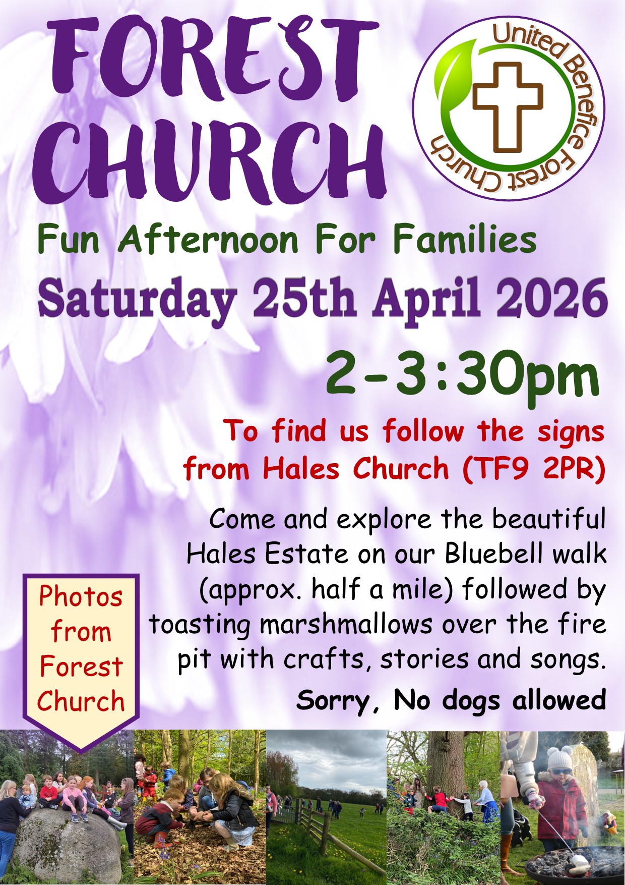 Come and explore the beautiful Hales Estate on our Bluebell walk (approx. half a mile) followed by toasting marshmallows over the fire pit with crafts, stories and songs.