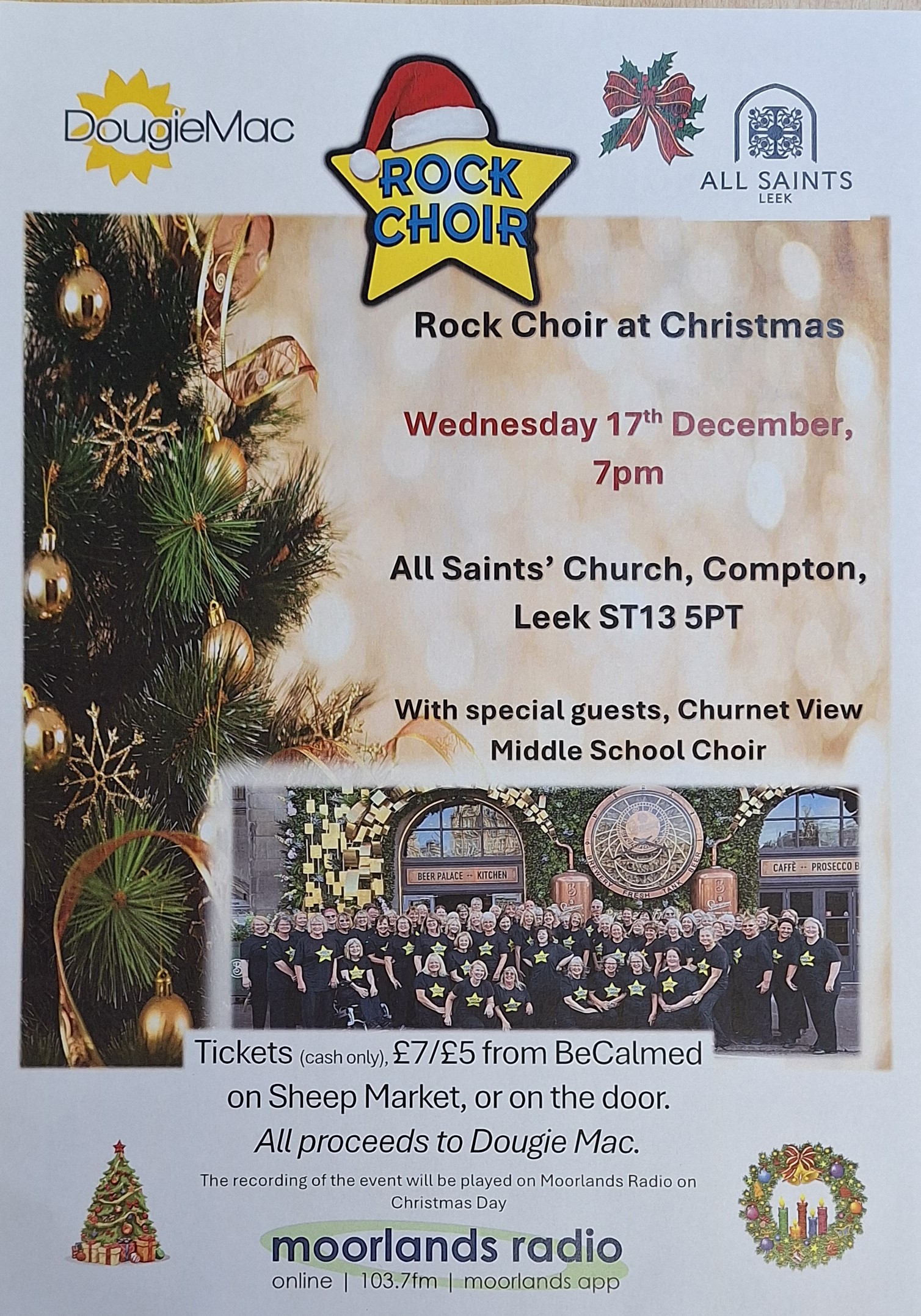 Traditional and seasonal favourites sung by Leek Rock Choir.Tickets £7.00 All proceeds to go to Douglas McMillan Charity