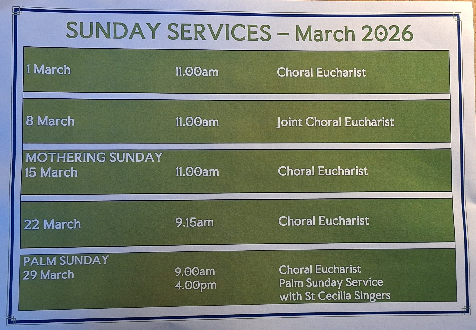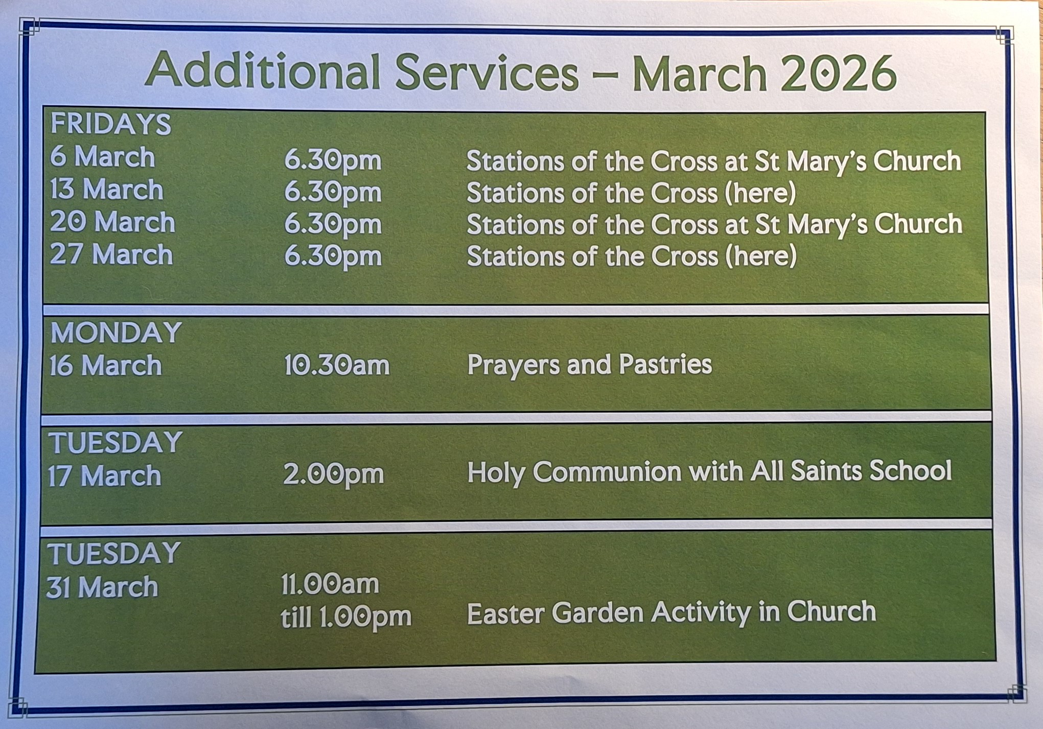 We have a busy month ahead with Sunday and Additional Services throughout March.