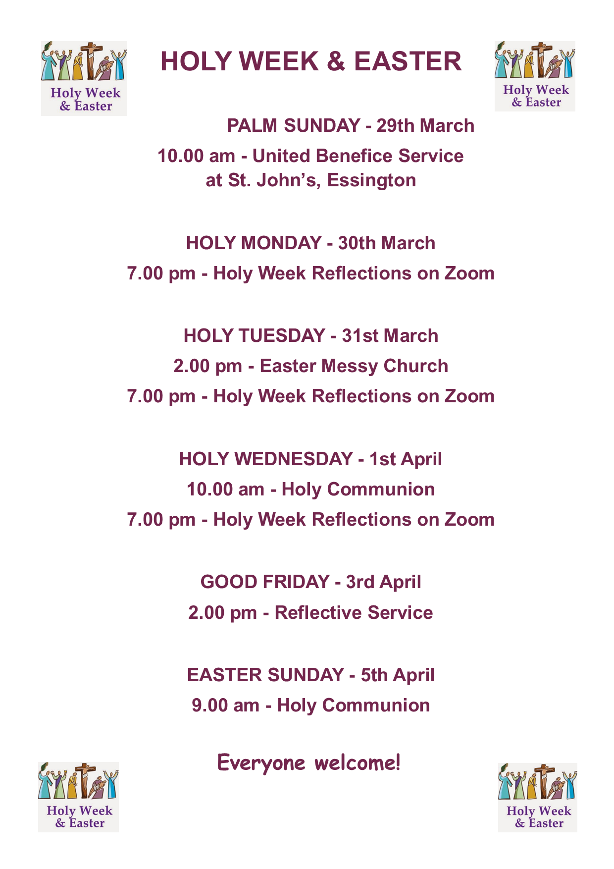 Everyone is welcome to join us for our Holy Week and Easter services and events.