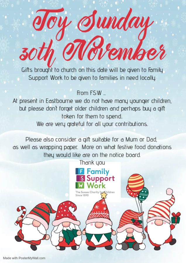 Our Junior Church meet on the first Sunday of the month in church (term time), other Sundays there is an activity sheet available. We also have a toy corner where children are welcome to choose toys to take to their pew.