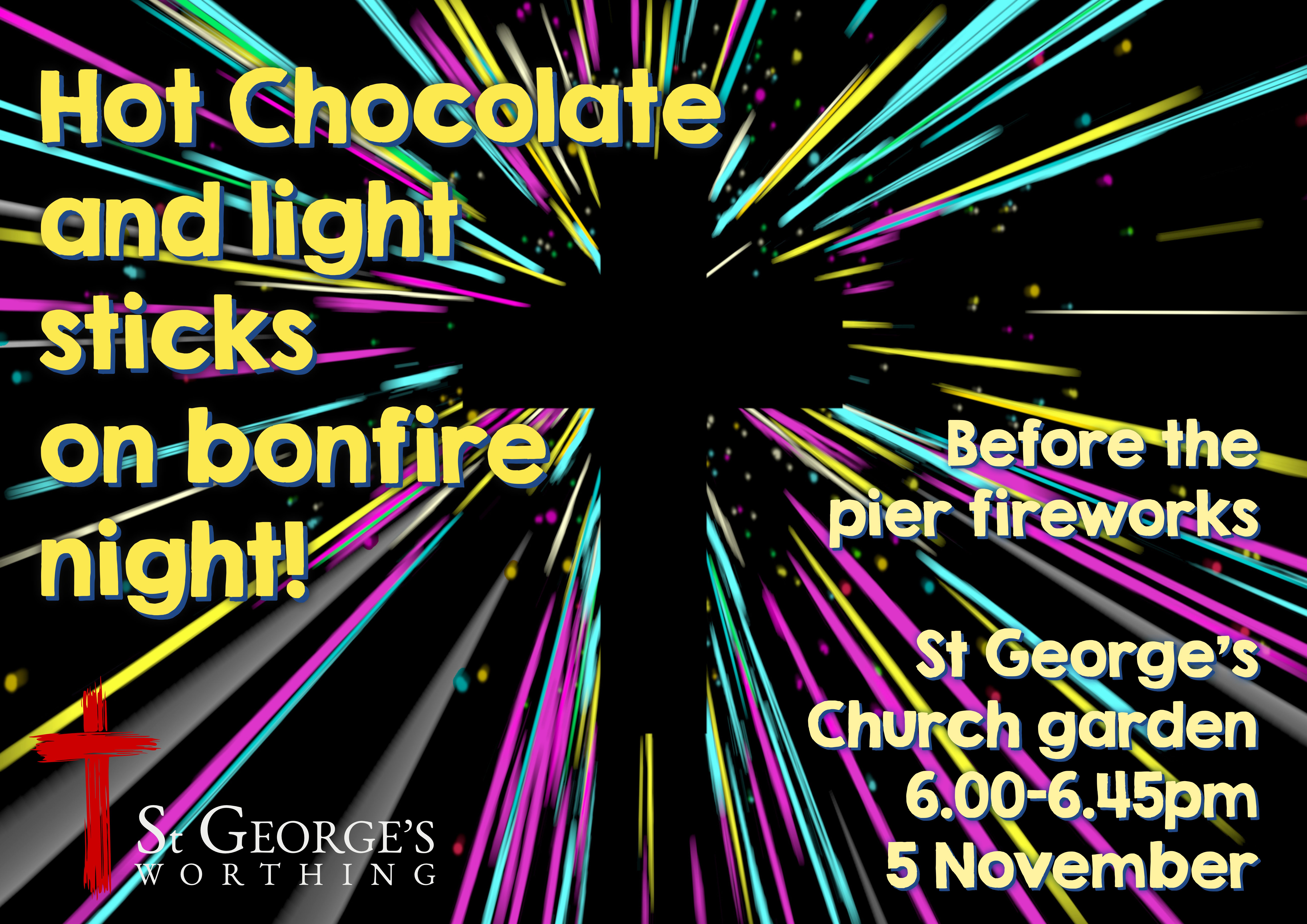 Hot chocolate and light sticks in St George's Church Garden before the fireworks at Worthing Pier!
